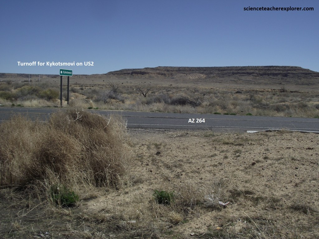 According to the interesting Hopi religion: The Hopis’ emerged from the underworld through a sipapu, (an opening), in the Grand Canyon. They came into this, the Fourth World, with the help of a small bird known as the shrike, which brought them into the world of light. Here they made their vow of righteous living to “Sootukwnangwu”, the Supreme Creator. “Masauwu”, (the guardian spirit over the land), told the Hopis that they were to serve as the earth’s steward once their mandated four migrations to the north, south, east, and west in search of “tuuwanasave”, or earth center, before it comes to an end. The center point of the cross formed from their four directional routes is the Hopi mesas. This was the chosen place because it was a harsh enironment where adherence to the laws of the Supreme Creator must be followed exactly to ensure the survival of the clans. I decided to explore these mesas by driving from Moenkopi to Kearns Canyon on AZ 264, imaged below.