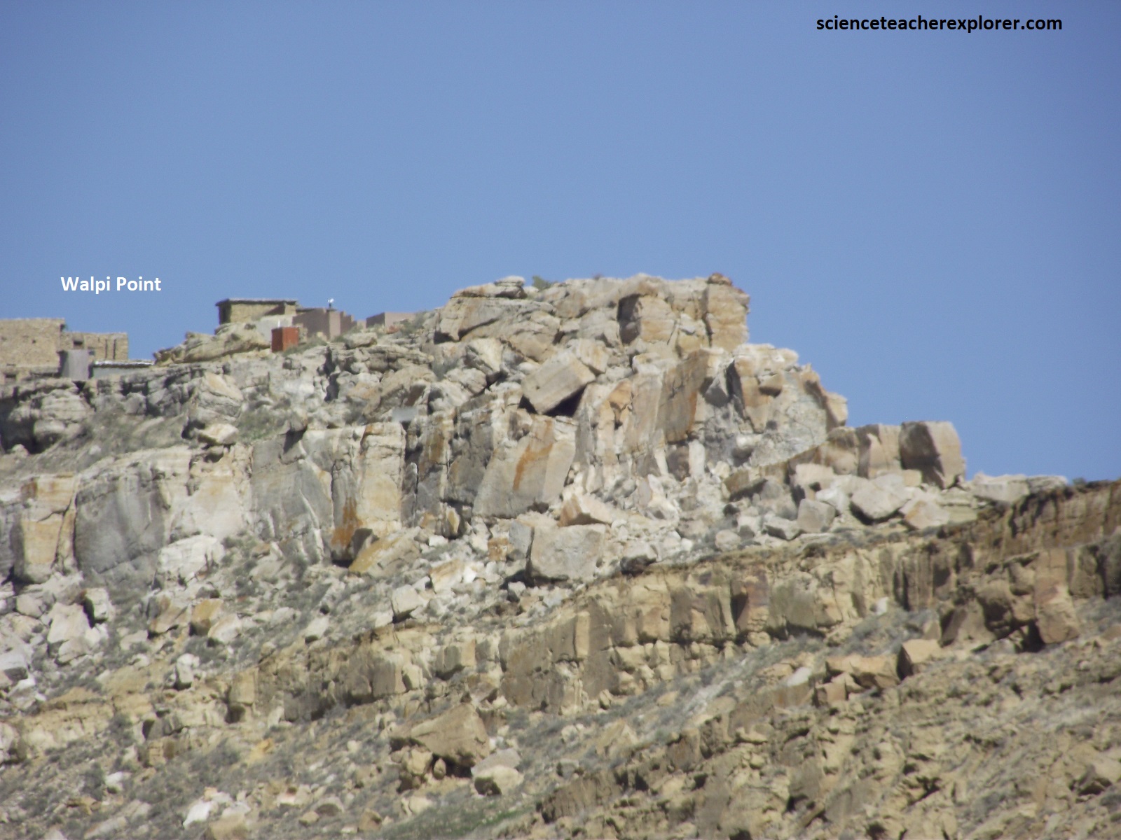 Pictured above, near the tip is Walpi perhaps the most dramatic of all Hopi Villages. “Walpi” means the gap, referring to the opening in the mesa just below Hano, (pictured above on the left side of the photo). The village sits on the narrowest part of the mesa and is only 46m across at its widest point. Just below this village on the northwest side of the mesa is the original village of Old Walpi, where the Hopis’ lived until they moved their village to the top of the mesa. They did this because they feared Spanish retribution after the 1680 Pueblo uprising against the Spanish & Jesuit Rule in 1680.
