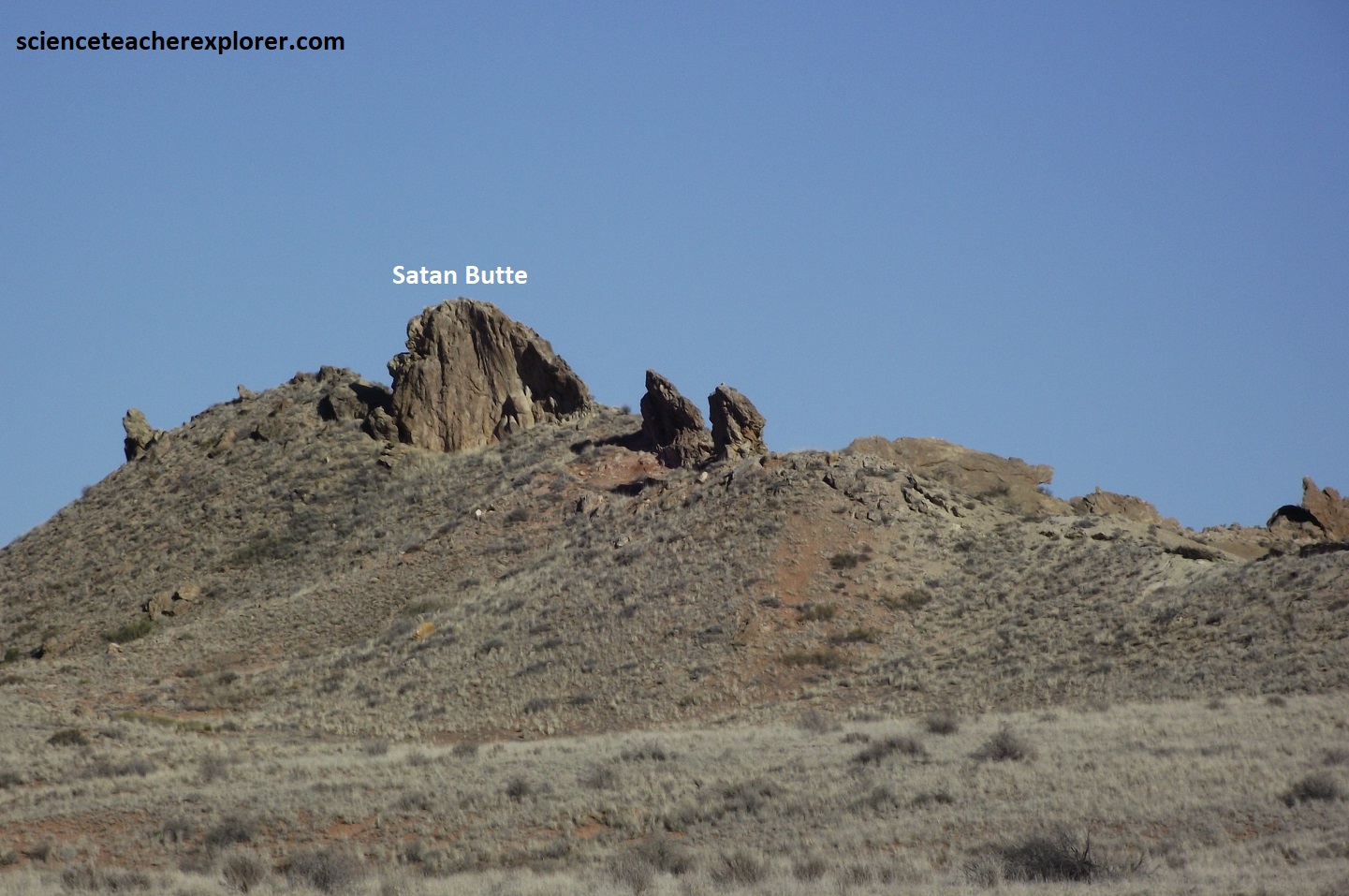 Pictured above, the Morale Claim produced uranium from the sediment deposited within the maar of Red Clay Mesa, and a complete cross-section of a diatreme and maar is visible from the nearby Satan Butte and it’s standing rocks.