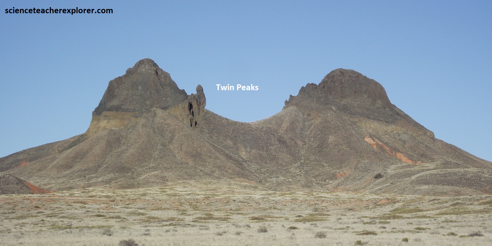Returning to US-8 and driving south, the highway passes between the diatremes called, Ape Mtn., Twin Peaks and the Five Buttes, (pictured below).