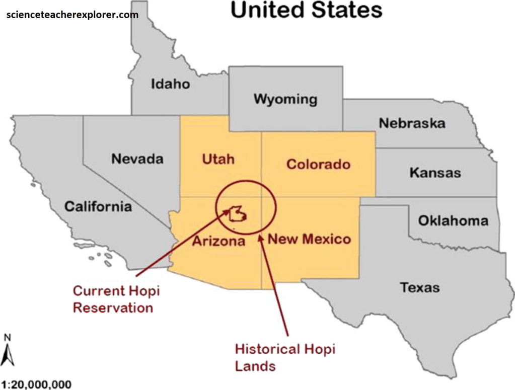 On my way to the 2024 Solar Eclipse in Texas, I drove through the Hopi Nation in Northern Arizona. The Hopi have always lived in the Four Corners region of the Colorado Plateau. Even though the legal boundary of today’s reservation has confined them to a relatively small land mass in comparison to the Navajos’ reservation, evidence of the original boundaries, (or tutsqua), was established by tradition and history, are Navajo Mountain to the north, down the Colorado River to Bill Williams Mtn. to the west, over to the San Francisco Peaks, along the Mogollon Rim to the Zunis’ Blue Lake for the southern boundary, and north to Canyon de Chelly and the Four Corners area for the eastern boundary.