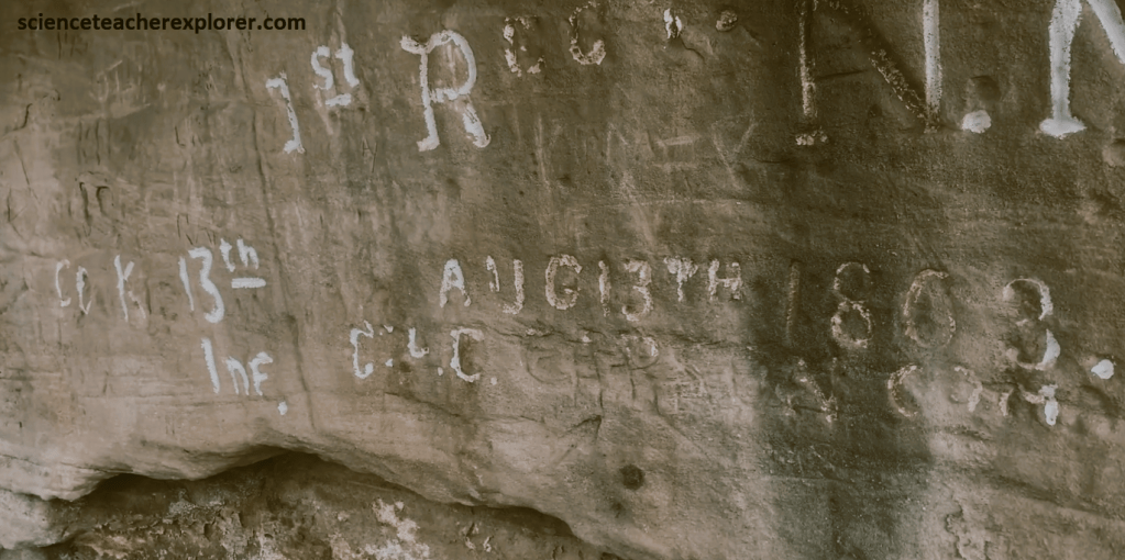 Carson assembled his legion in Peach Orchard Springs. Scored on the canyon wall behind the BIA Agency building is an inscription that reads: “1st Reg’t N.M. Vol’s., Aug 13, 1863, Col. C. Carson, Comm,”; (pictured below). {Note the poor condition of this historical inscription; I expect it too disappear soon}.