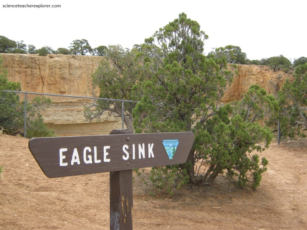 Sinkholes are found in limestone karst formations. They usually occur when water has formed a cavern below and then the cavern and then the cavern collapses. A good indicator of the age of a sinkhole is the shape of the “bowl”. The more, dish-shape, the older the sinkhole. By all indicators, “Eagle Sink” is a very young sinkhole.