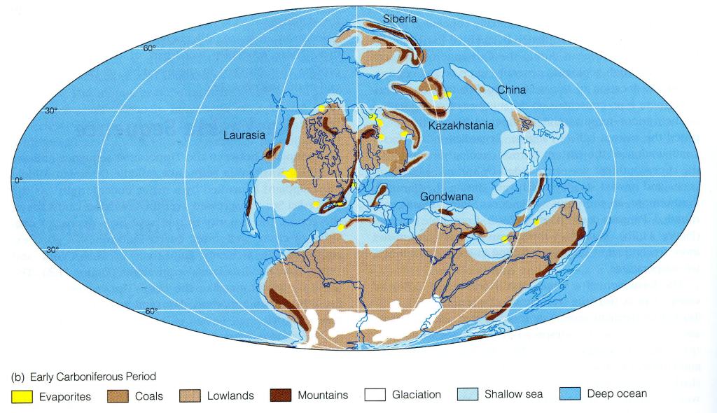 Imaged above and below, during the first part of the Paleozoic Era, the earth’s equator ran almost along the line of the present Wasatch Mountain front. Then there is a gap, (no record at all for the Ordovician, Devonian, and Silurian Periods). The region may well have been land, or what sediments were deposited were later eroded away.