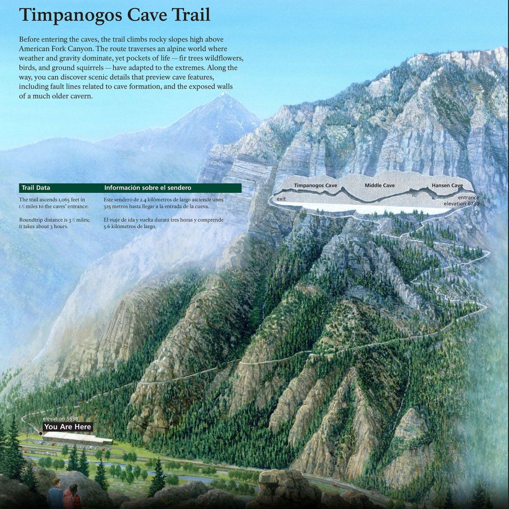 The Timpanogos Cave National Monument is managed by the National Park Service. Imaged above, the 2.4 km trail to the cave is steep, gaining close to 300 m, but paved and fairly wide, making the caves accessible to most.