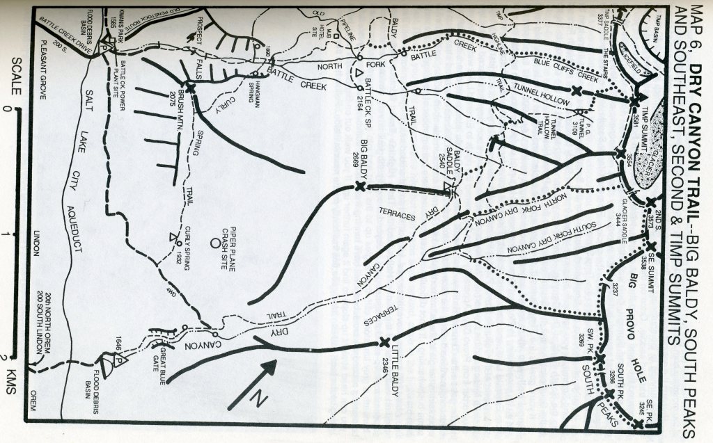 Picture above, the locally unique ice is a relic of the region’s formerly colder climate. I skied, (without skis), down this permanent snowfield as a shorter descent route to the lower cirques. My total trek over the top, was 56 km from the mouth of Dry Canyon to Aspen Grove, and took me 16 hours.