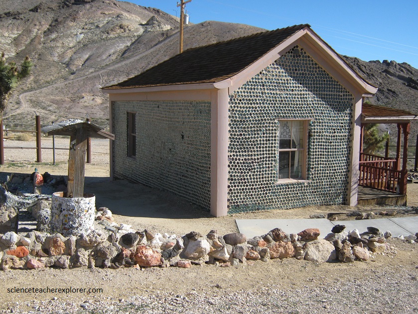 While Rhyolite and the Bullfrog Mining District produced more than $1 million within three short years [about $27 million by today’s standards,] this boomtown declined almost as rapidly as it came to life. Like most other has-been mining communities, the high-grade ore began to diminish in 1906 and completely disbanded by 1910. One of the attractions in Rhyolite is the restored “Tom Kelly Bottle House” pictured below. Restored for a Paramount Pictures film in 1926, the house still stands today and is the oldest and largest known bottle house in the United States.