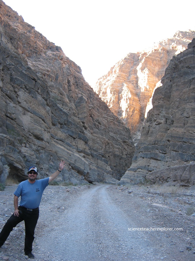 Pictured below, the road enters the narrows of Titus Canyon. I’m standing next to the complex folding of the Bonanza King Formation.