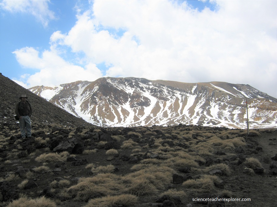 The verdant tranquility of our trek above ground belies the molten chaos more than 100 km below. The Tongariro National Park is best known for its trio of andesitic volcanoes, (Tongariro, Ngauruhoe, and Ruapehu), the latter two ranking among the most active composite volcanoes in the world. The Tongariro National Park has had a violent past and was formed by multitude of eruptions from at least six different cones. The oldest lava started flowing about 275,000 years ago, near what is now the Tama Lakes on the southern flanks of Mt Ngauruhoe. The eruptions continued until the Ice Age, as the ice retreated, it carved out valleys clearly visible in the lower Mangatepopo valley, on the Tongariro Alpine Crossing.