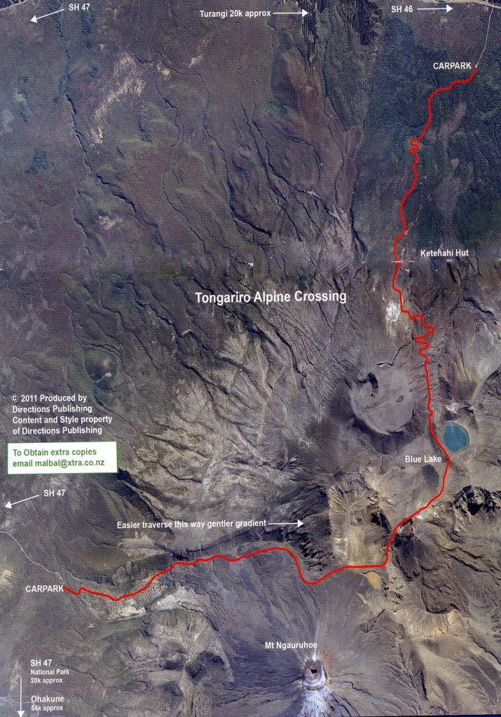 Our trek passed over the volcanic terrain of the multi-cratered active volcano Mount Tongariro and the eastern base of Mount Ngauruhoe. The full distance of the track was supposed to be 19.4-km.