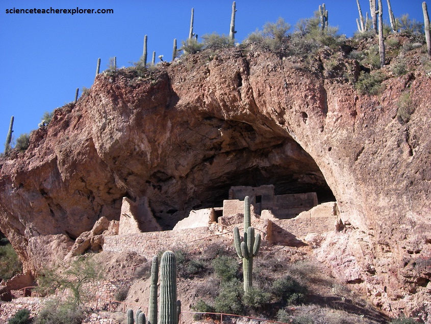 The forced of erosion finished sculpturing the Tonto Basin. Less than a million years ago, all of Central Arizona was gently uplifted some 1 to 2 thousand meters. This uplift initiated a new cycle of erosion that continues today. Only remnants of the Gila Conglomerate Formation can be seen today in the plaster which coats the cliffs near the Tonto cliff dwellings of the Salado people, (pictured below).