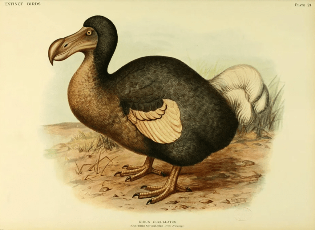 Just as surprising as the speed of the dodo’s demise is how little evidence remains that the bird ever existed. A few relics made it back to Europe during the 18th century, (a beak, skull and foot), but until recently our knowledge of the “dodo” was mainly based on sketches by 17th century seamen. [A skeleton was found in 1865 & assembled in Durban, South Africa].