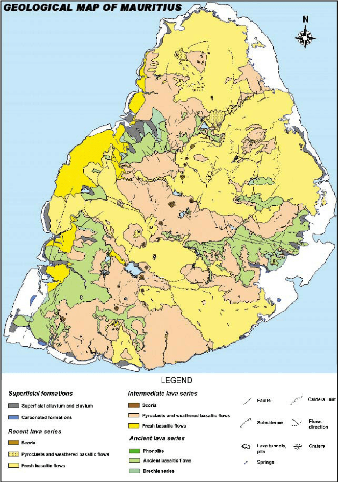 Mauritius is a volcanic island and is relatively young in geological terms compared to other islands. It was formed approximately 10 million years ago by volcanic eruption. In fact, the island itself is a volcano. The highest point, 550 m – 600 m above sea level, is the central plateau; from there on, the land gently slopes towards the sea. There is some debate as to the actual formation of Mauritius. While some scientists are in favor of the hotspot theory that created the Mascarene island groups, others support the independent formation of the Mascarene islands by fracture zones on the sea floor, (imaged below). While in general both theories seem plausible. Whatever the case, the initial genesis of the island remains the same. Everything started 65 million years ago, during the breakup of Gondwana when India detached from Africa and moved upwards towards Asia.