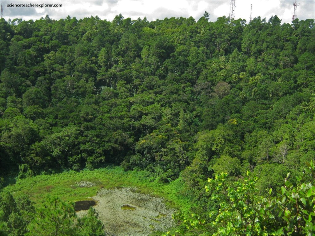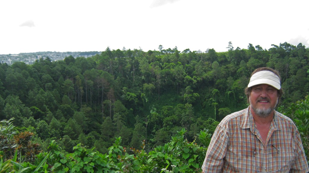 A road runs up the slope of the volcano to the crater, 650m above sea level. It was possible to climb down the inside of the deep, densely vegetated crater to the lake, (but I didn’t).
