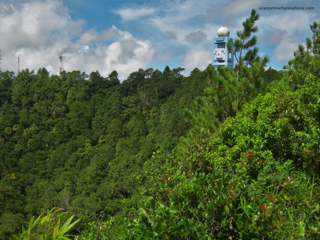 Near the rim of the volcano, there is a meteorological station that monitors cyclonic activity in the region, (pictured below).