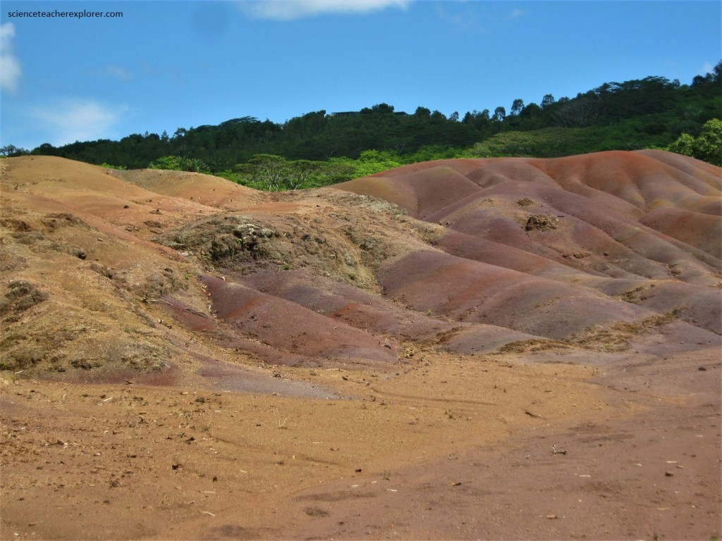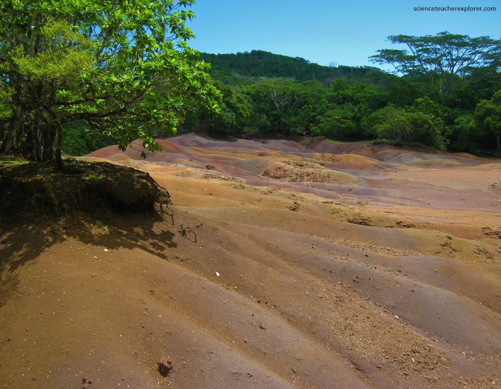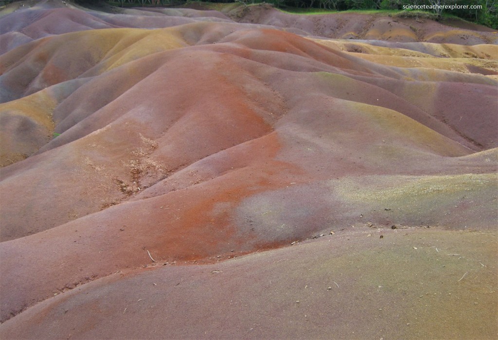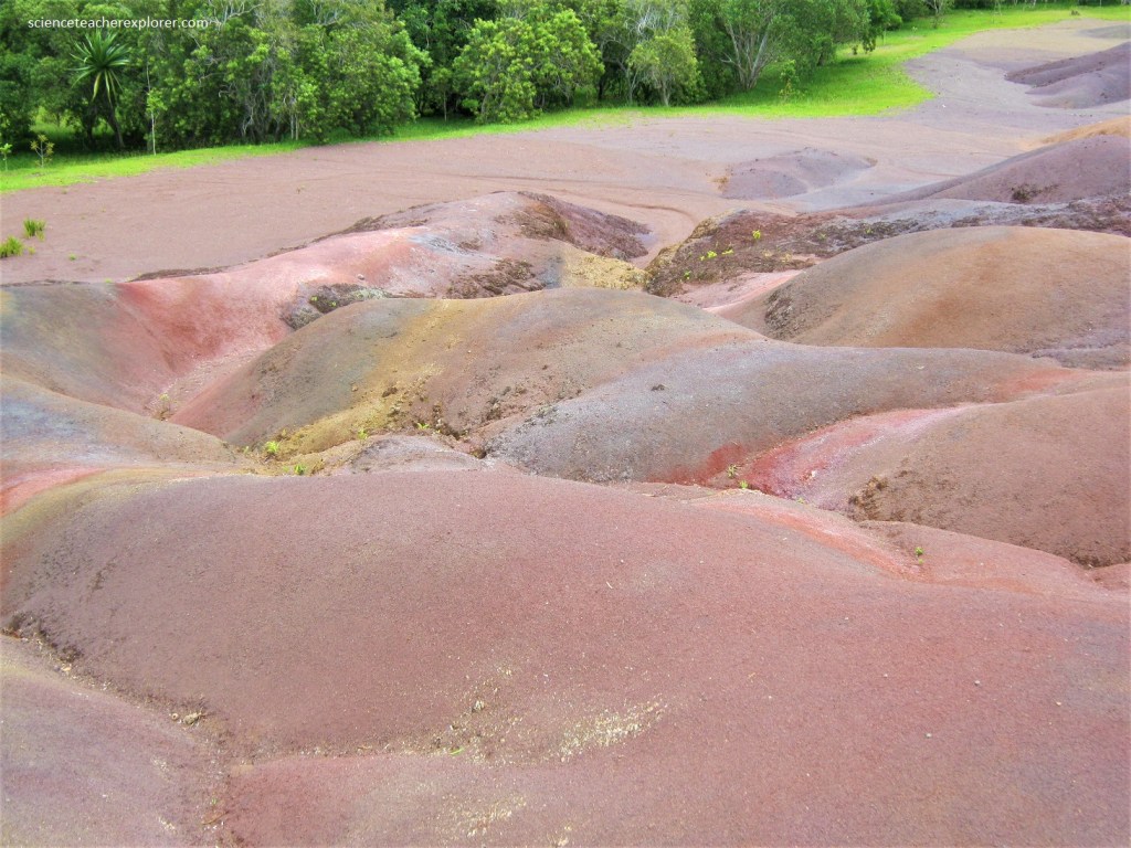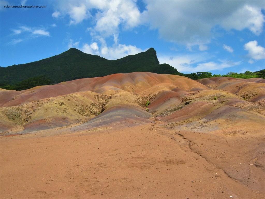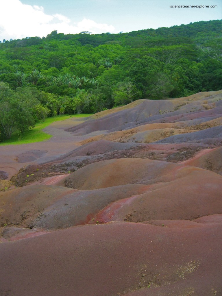 Over time, Mauritius’ hot and humid climate eroded the area’s basaltic rock, leaving behind a chemically-weathered, porous rock known as saprolite at the surface. This erosion created the spectacular landform we see today, with its many colors and sharply defined ridges.