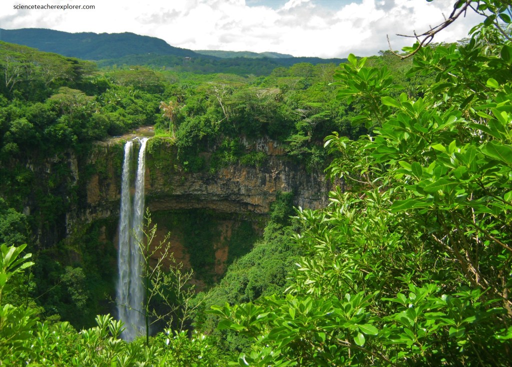 Pictured above, the Chamarel Waterfall is testimony to Mauritius’ volcanic past, which lasted several million years. Its bedrock consists of two lava flows from two different volcanic periods. the first flow is dated to 10-8 million years ago. It is heavily weathered, proving that it remained exposed for millions of years before being covered by a second lava flow 3.5-1.9 million years ago. Over several million years, basalt leaching and the erosion caused by fast-flowing streams carved the deep valley that the waterfall flows through today.