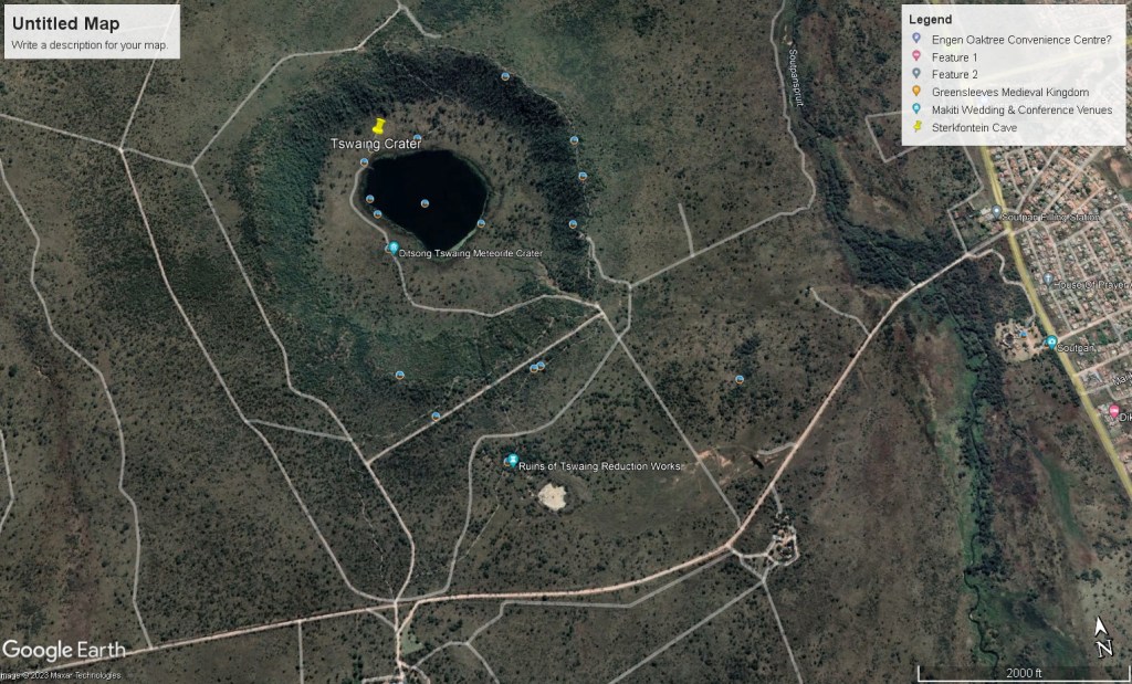 In March of 2023, I explored the Tswaing Crater, 40 km north-northwest of Pretoria, South Africa, near the major settlement of Winterveld, and within a 1.946 ha conservation area managed by Ditsong Museums, (pictured below).