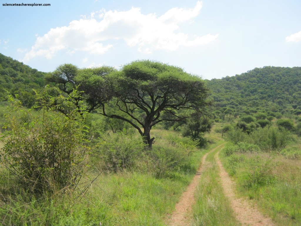 There is a very large diversity of trees, shrubs, grasses and other floral species, (some 480 plant species), that have been identified so far in the Tswaing Crater. The upper parts of the crater rim are covered by broadleaved woodland, (mainly Combretum trees), and the lower parts by thorny trees, (mainly Acacia woodland). These variations are related to differences in the slope angles at various levels of the crater rim and the types of soils of the crater interior.