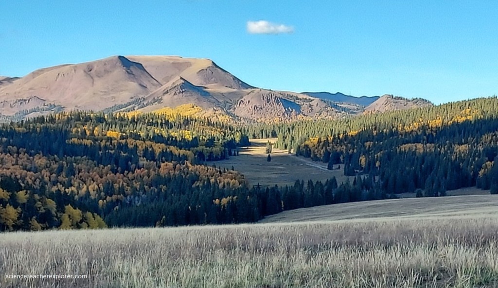 Pictured above, Circleville Mountain contains a sequence of resistant, dark-gray to black, vesicular to dense lava flows and autoclastic flow of porphyritic basaltic andesite.