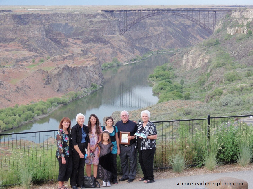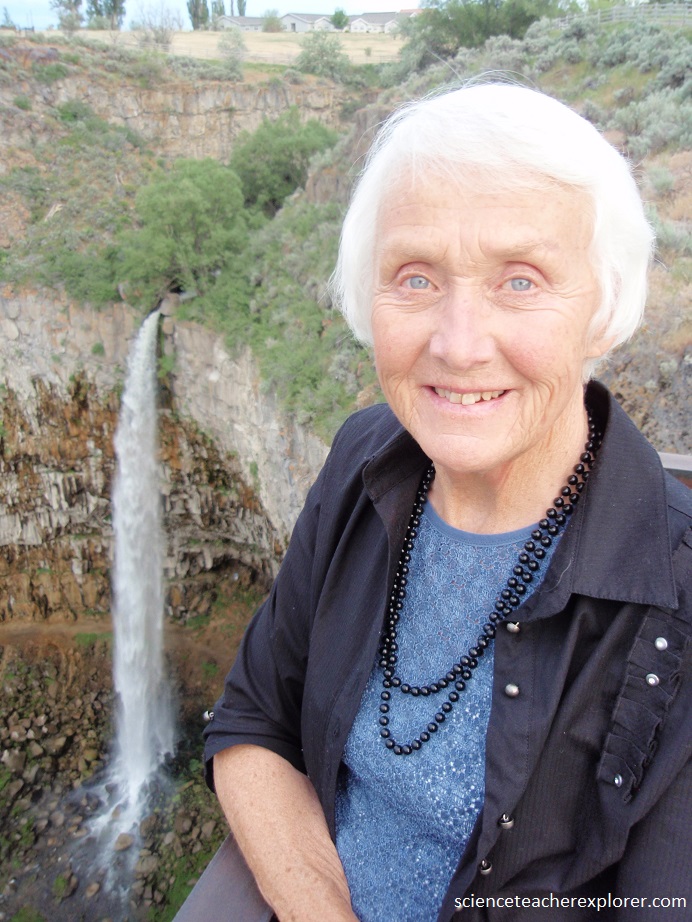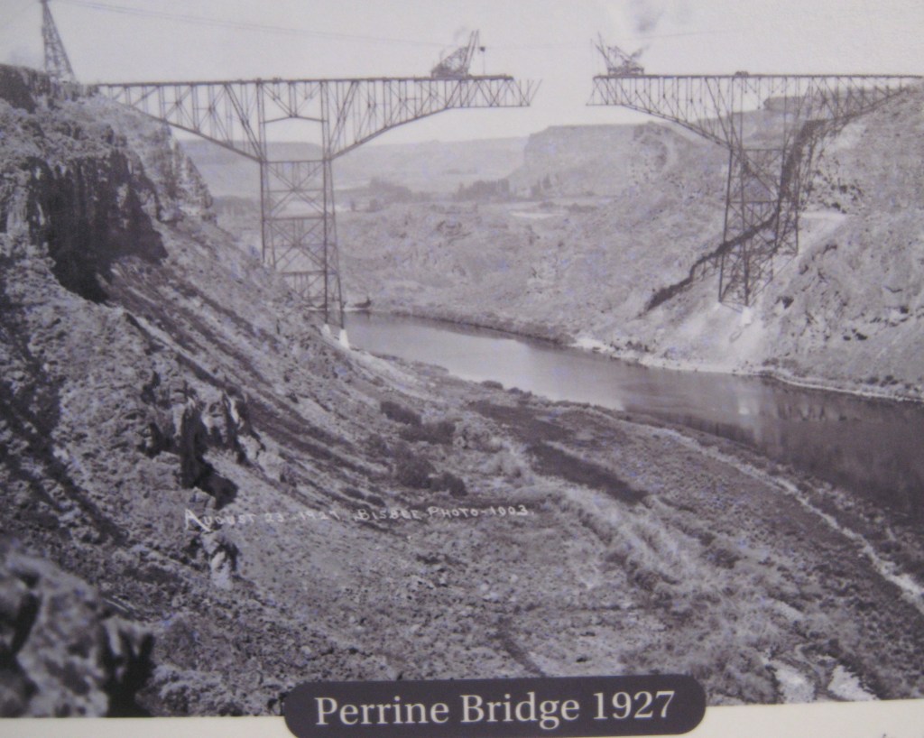 Pictured below, Becky’s aunt, Jeannie Coles is posing next to the Perrine Coulee Falls on the rim trail. The Perrine Coulee Falls was formed as a result of the creation of the canal system in 1905. Before the Perrine Bridge was built in 1927, the only way across the canyon was through the Perrine Coulee Falls. Becky’s mother and aunt was raised near Twin Falls, Idaho.