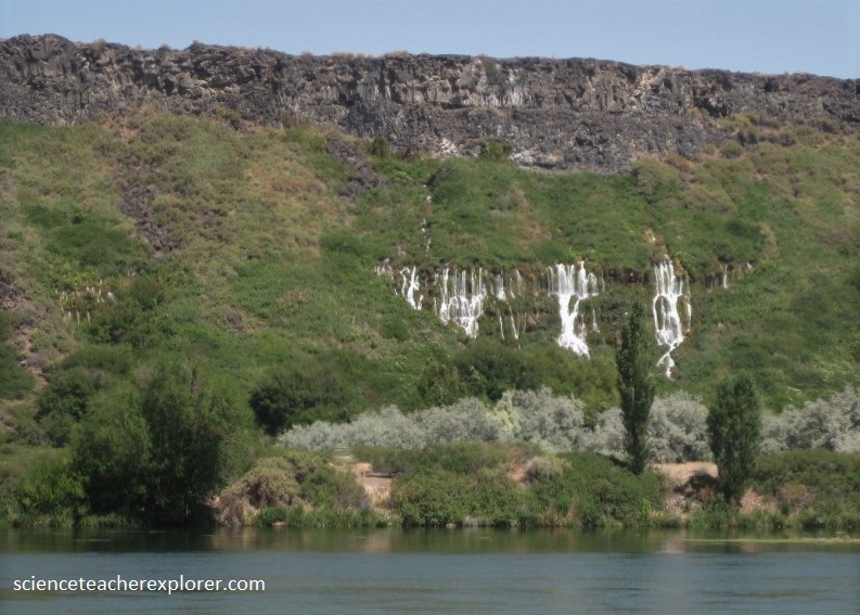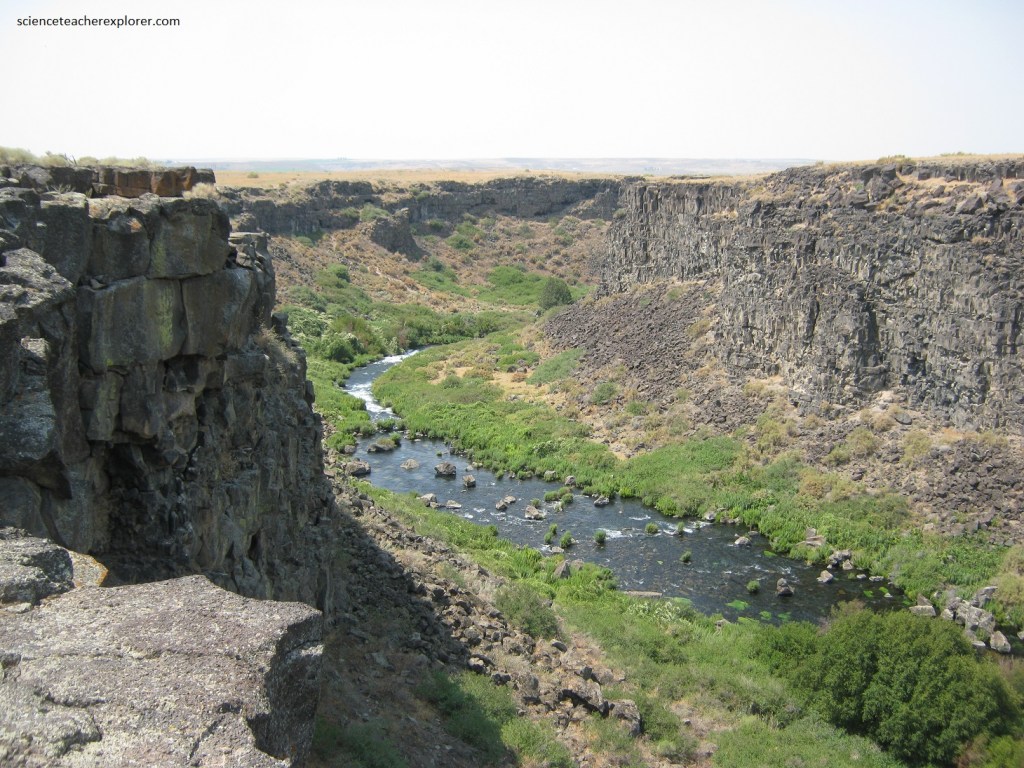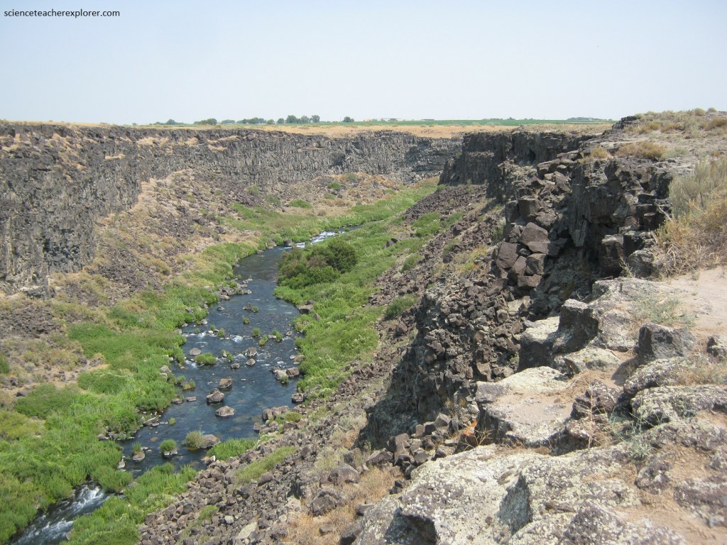Pictured above, “Box Canyon” is fed by a large spring at the head of the canyon but lacks an extensive drainage basin and a flowing stream above. The spring is the 11th largest springs in North America, discharging approximately 680, 000 liters of water per minute. The source is again the Snake River Plain Aquifer.