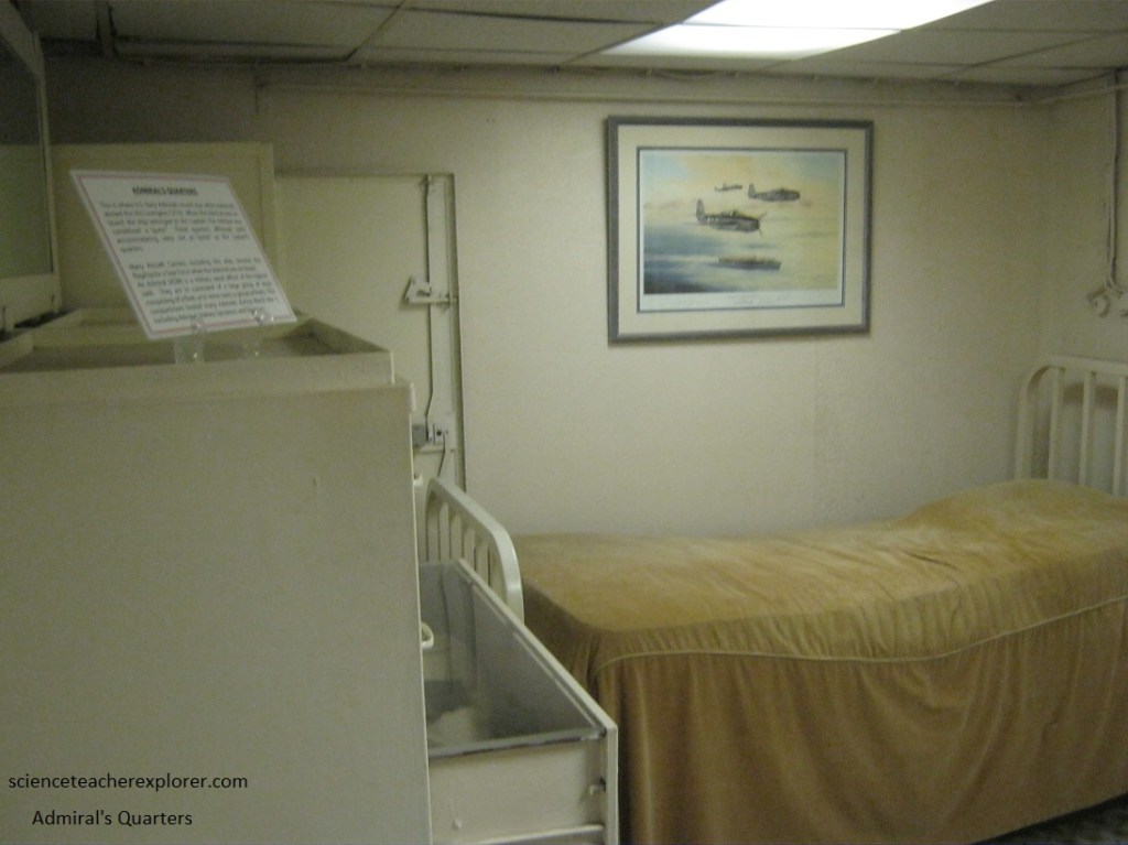 Pictured above, the ship belonged to the Captain and when the Admiral was onboard, he was considered a “guest.” His quarters, although quite accommodating, were not as “lavish” as the Captain’s quarter. When the Admiral was onboard, the entire ship functioned as a flagship.