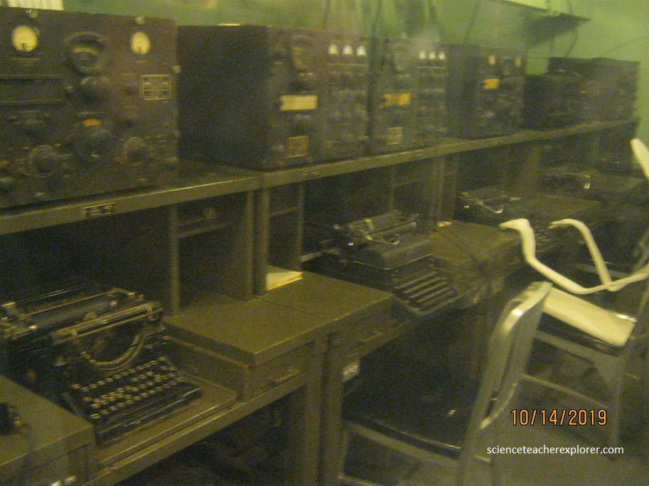 Pictured above, each type of radio covered different ranges of frequencies. Low frequencies, such as the Honolulu Station, traveled long distances and were used for communicating with shore stations. High frequencies were essentially line-of-sight frequencies and, as a result, were used for shorter-range communications such as between ship and airplanes in the fleet. A small record player was used to help supervisors copy messages when they were busy doing other things, such as when the Ship was in combat. Radio Central was not the only radio room on board the Battleship. The Ship had four other auxiliary radio rooms, located throughout the Ship. If one radio room was damaged in battle, other radio rooms would be available to maintain critical communications with other units of the fleet.