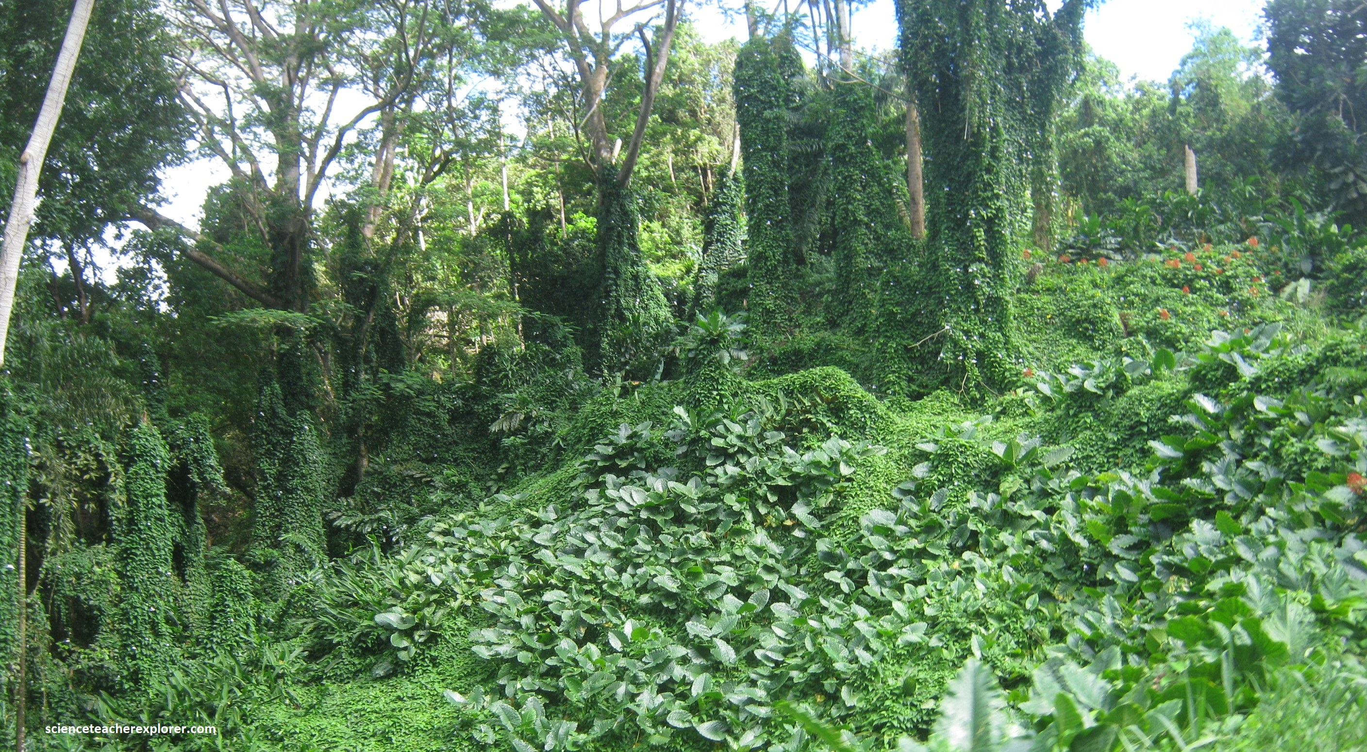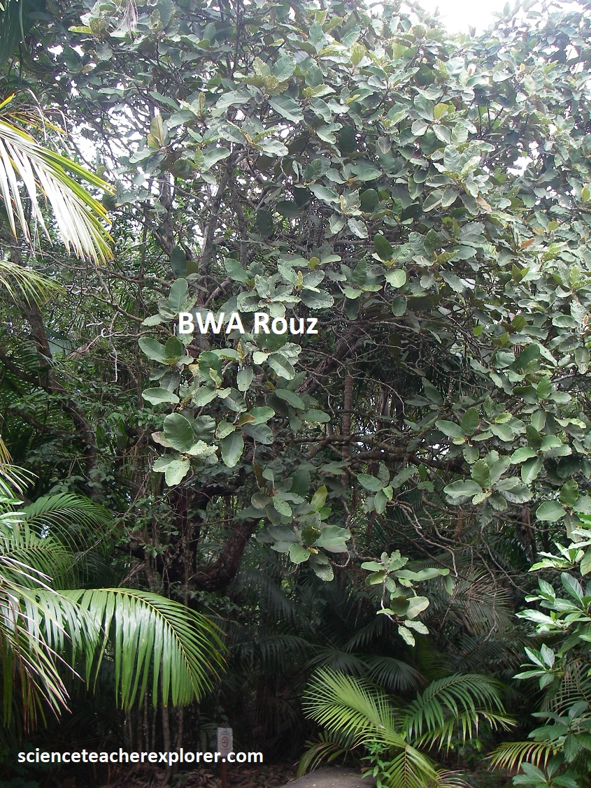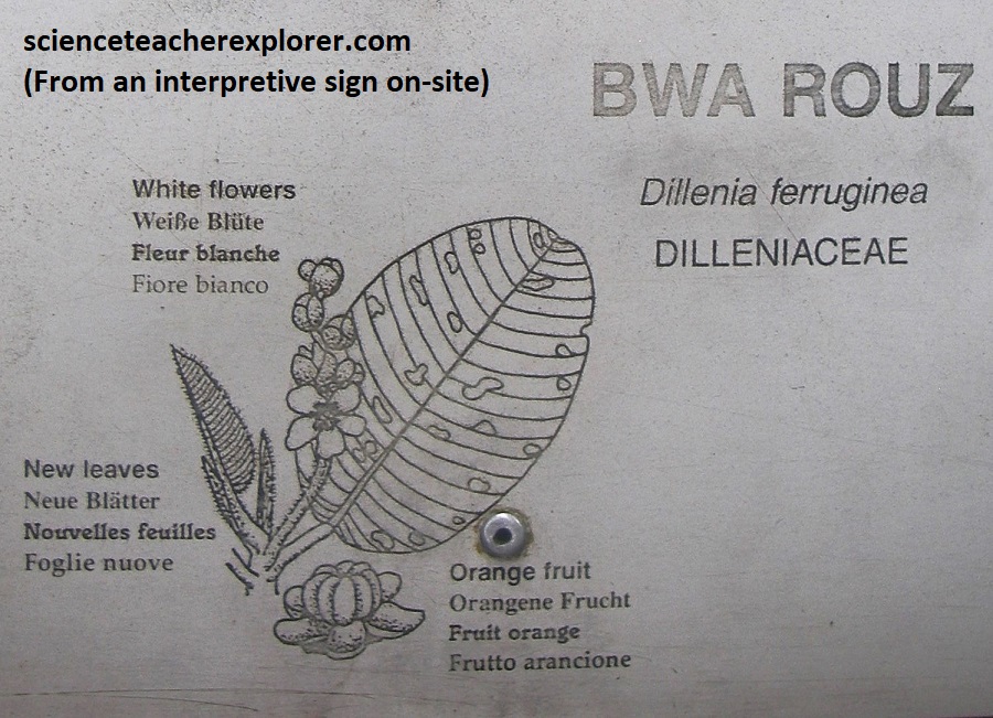 Along the ridge-tip of the park, Mike and I came across a grove of Dillenia (Dillenia ferruginea) Trees. The beautiful and striking Dillenia Tree was easily recognized on the rough leaves with prominent veins on the upper-side, most often rusty on the underside and being almost always damaged by insects. The tree, which is quite common in the Sechelles and can grow to some 20 tall, is name after the German scientist, Johan Jacob Dllenius (1687-1747). This tree has contributed much to the construction materials in the Seychelles. It is quite fire-resistant.