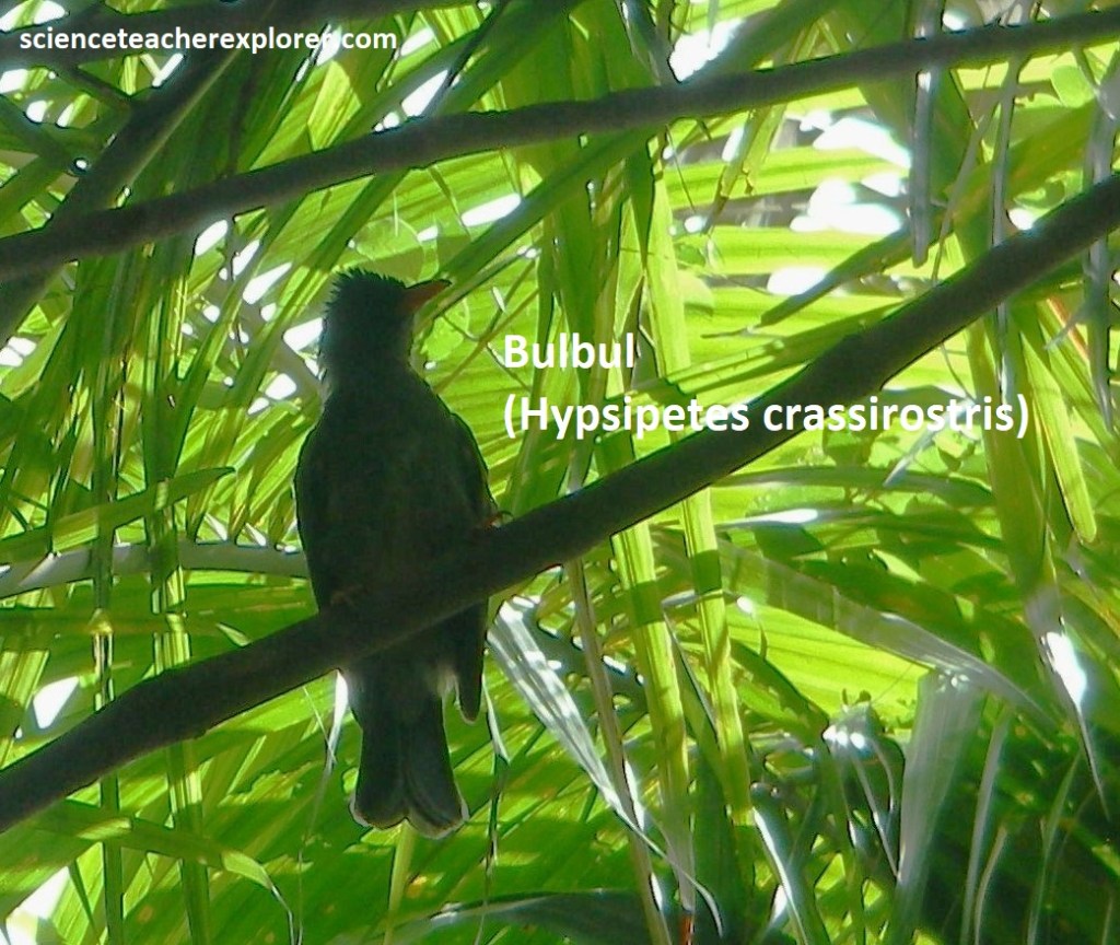 Pictured above, the Seychelles Bulbul (Hypsipetes crassirostris) is a curious and very alert, noisy bird, that we heard on your walk in the forest. It produced a succession of cackling and harsh nasal calls that alternate between low-pitched and melodious notes.