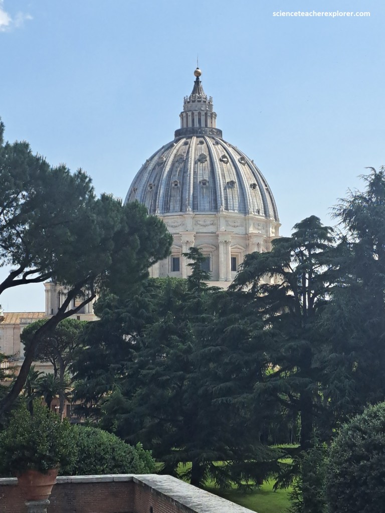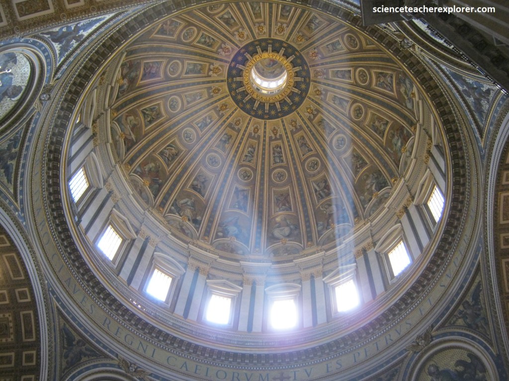 Picture above, Becky and I got an amazing view of the dome of Saint Peter’s, a design by Michelangelo. Even though Michelangelo considered himself to be a sculptor, he had the capacity to become amazingly good at something else. So later in life, Michelangelo started with architecture. Michelangelo re-designed the dome in 1547, when he was 72 years old, and came up this amazing design. It was the tallest dome in the world with a height of 136.57m.