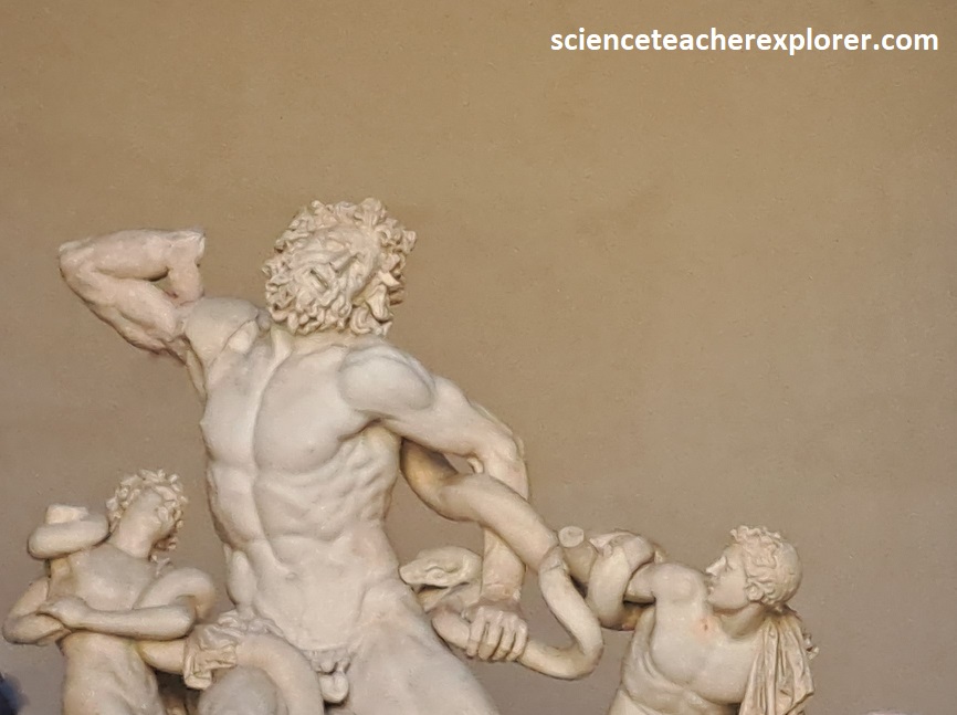 Pictured above, the most important statue in the ‘Octagonal Courtyard’ is the Laocoon Group. It dates back to the first century AD. It is called a monolithic statue because it was made from one single block of marble. It represents the ‘Trojan Priest’ that warned the Trojan’s of the coming doom of the gifted Trojan Horse. He warned the Trojans not to take in the giant wooden-horse. But then two snakes came from the sea and devoured the priest and his two sons. The Trojans thought this meant the gods wanted them to take in the horse. So they did and in the night the Greek warriors came out of the belly of the horse, opened the city gate and troy was destroyed. You can see the fear and pain in the expressions. Even in antiquity this was a very famous piece and influenced other sculptors of the baroque time.