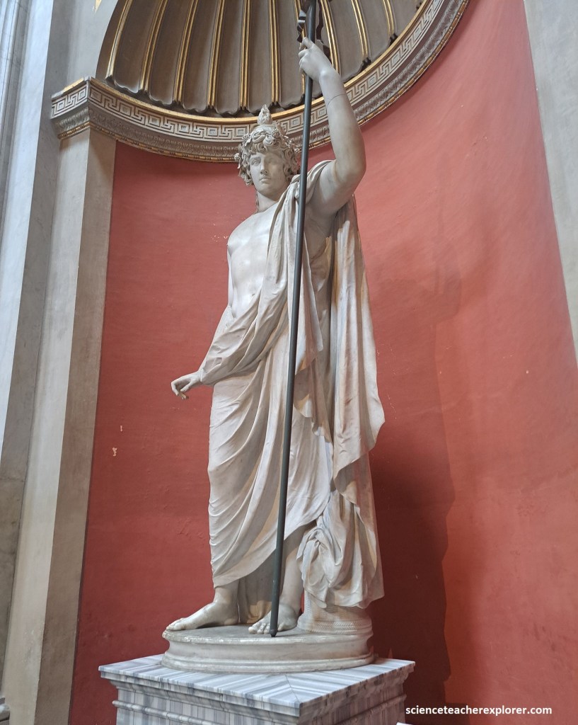 Pictured above, the next statue that is of interest was the one on the left side of the ‘Gallery of the Candelabra’. It was ‘Bacchus’, the God of Wine. He was carrying a little boy on his back. It is very famous because it still had the original glass eyes.
