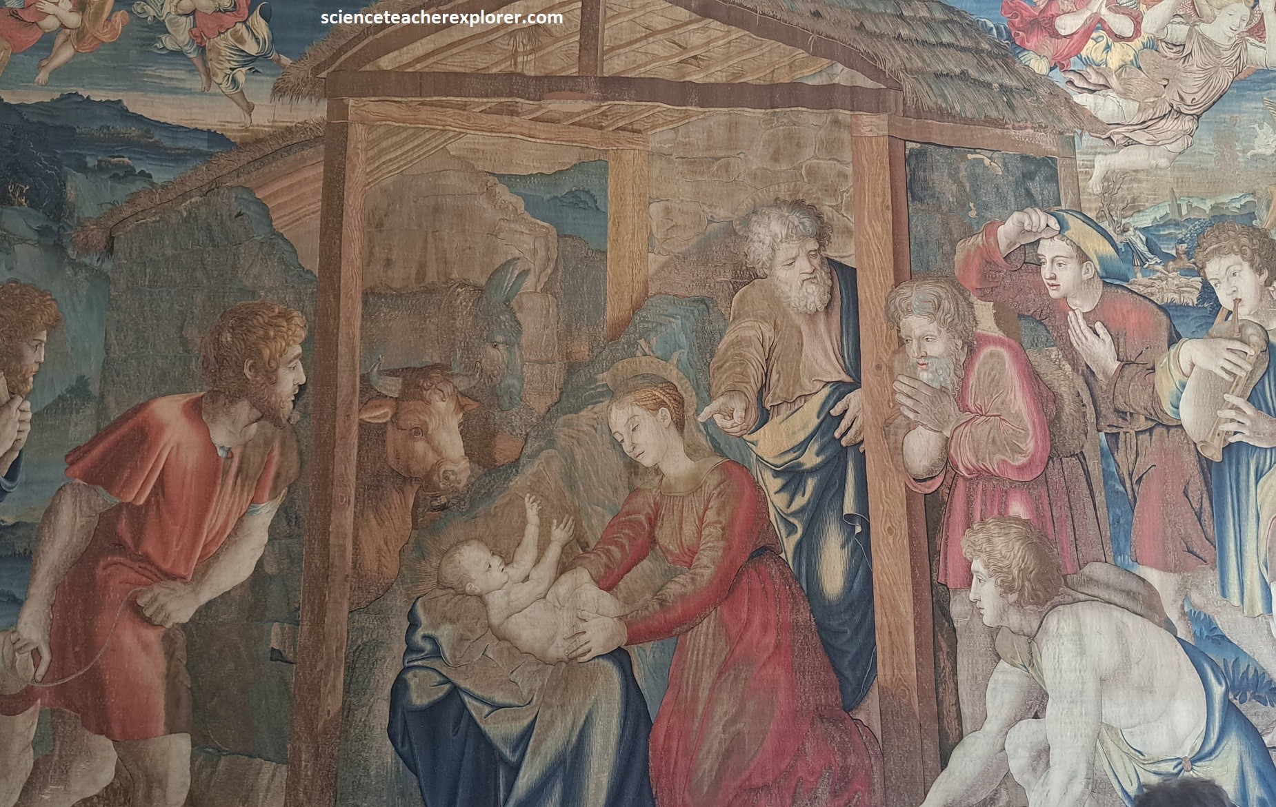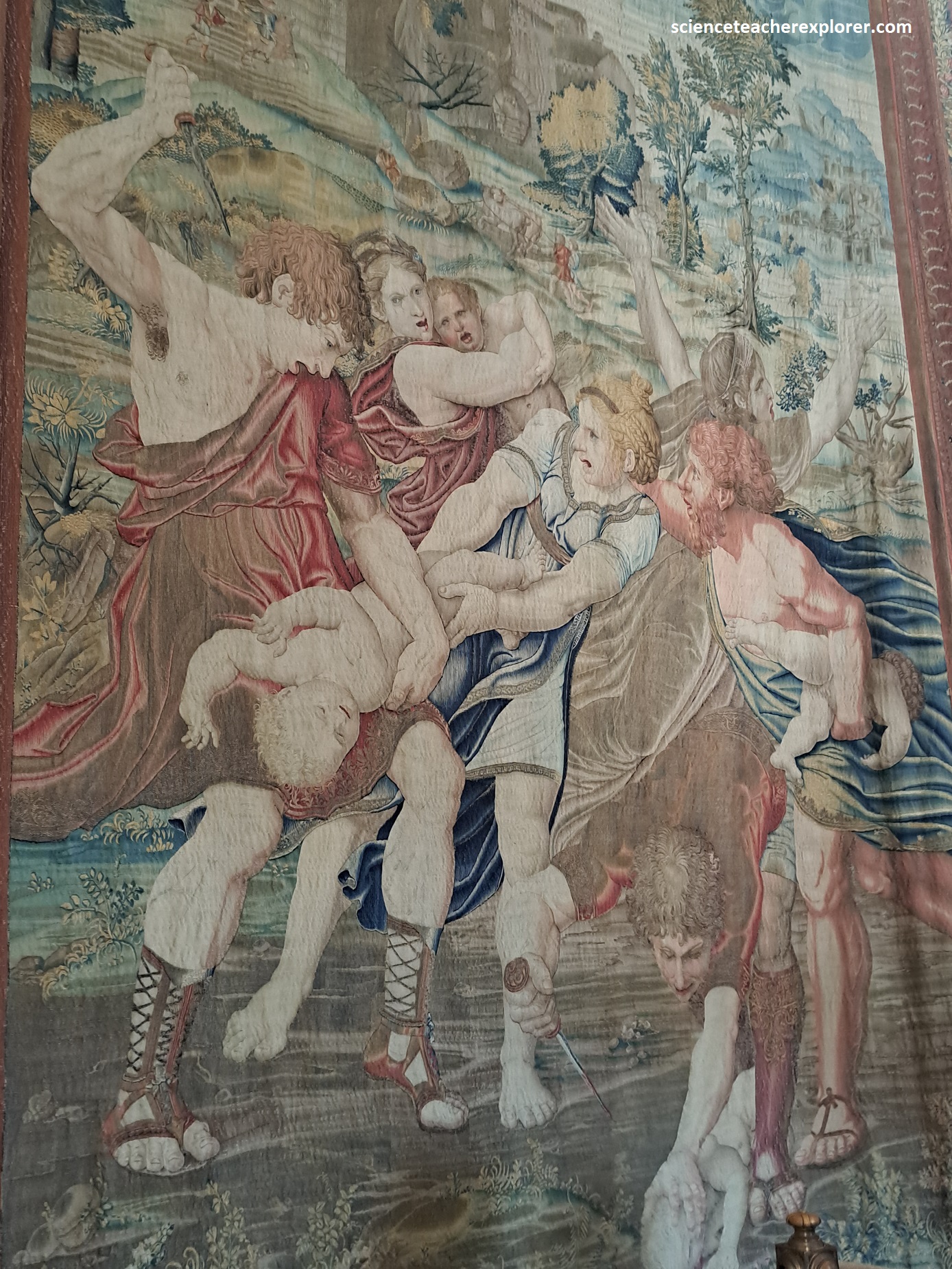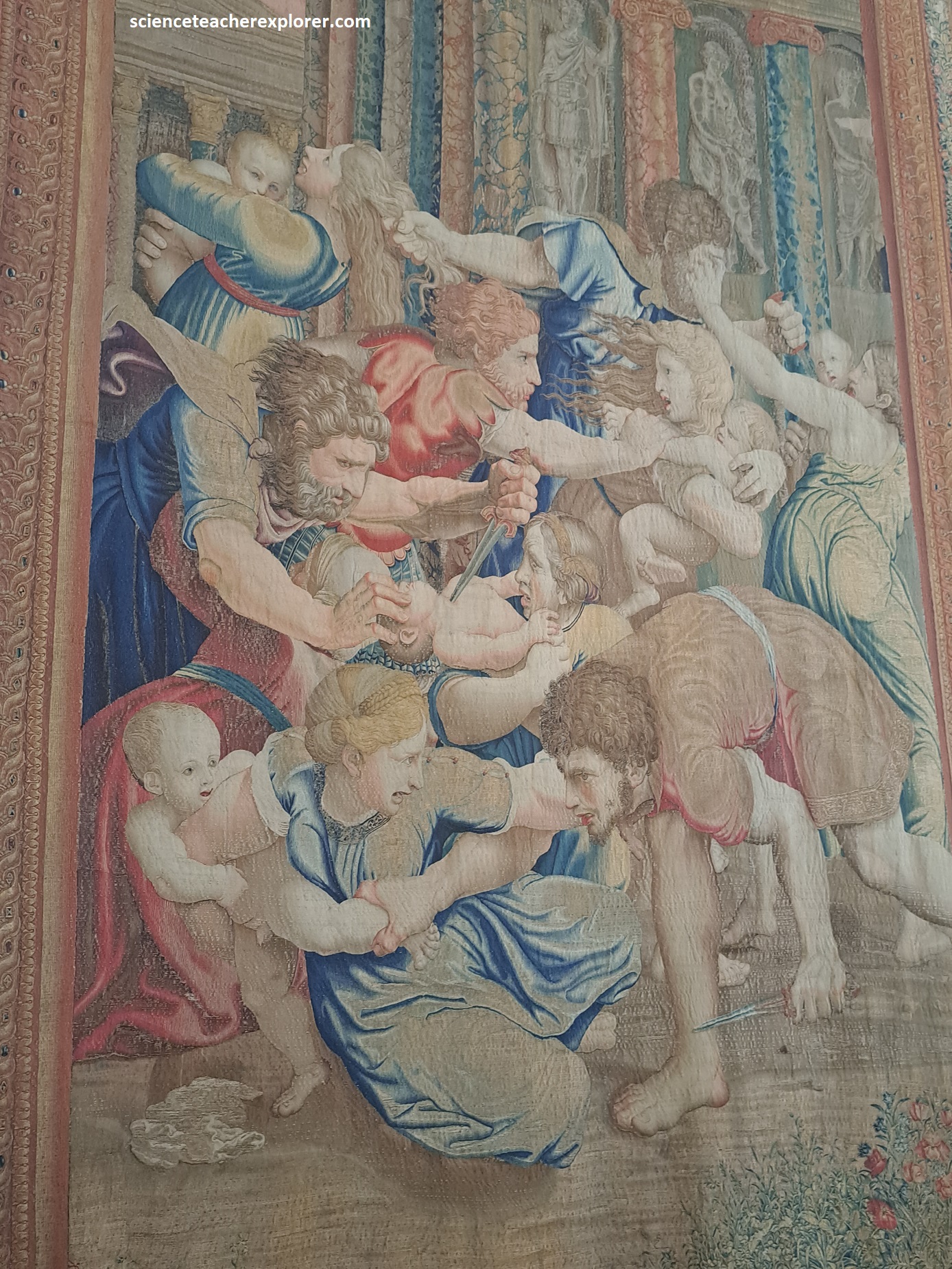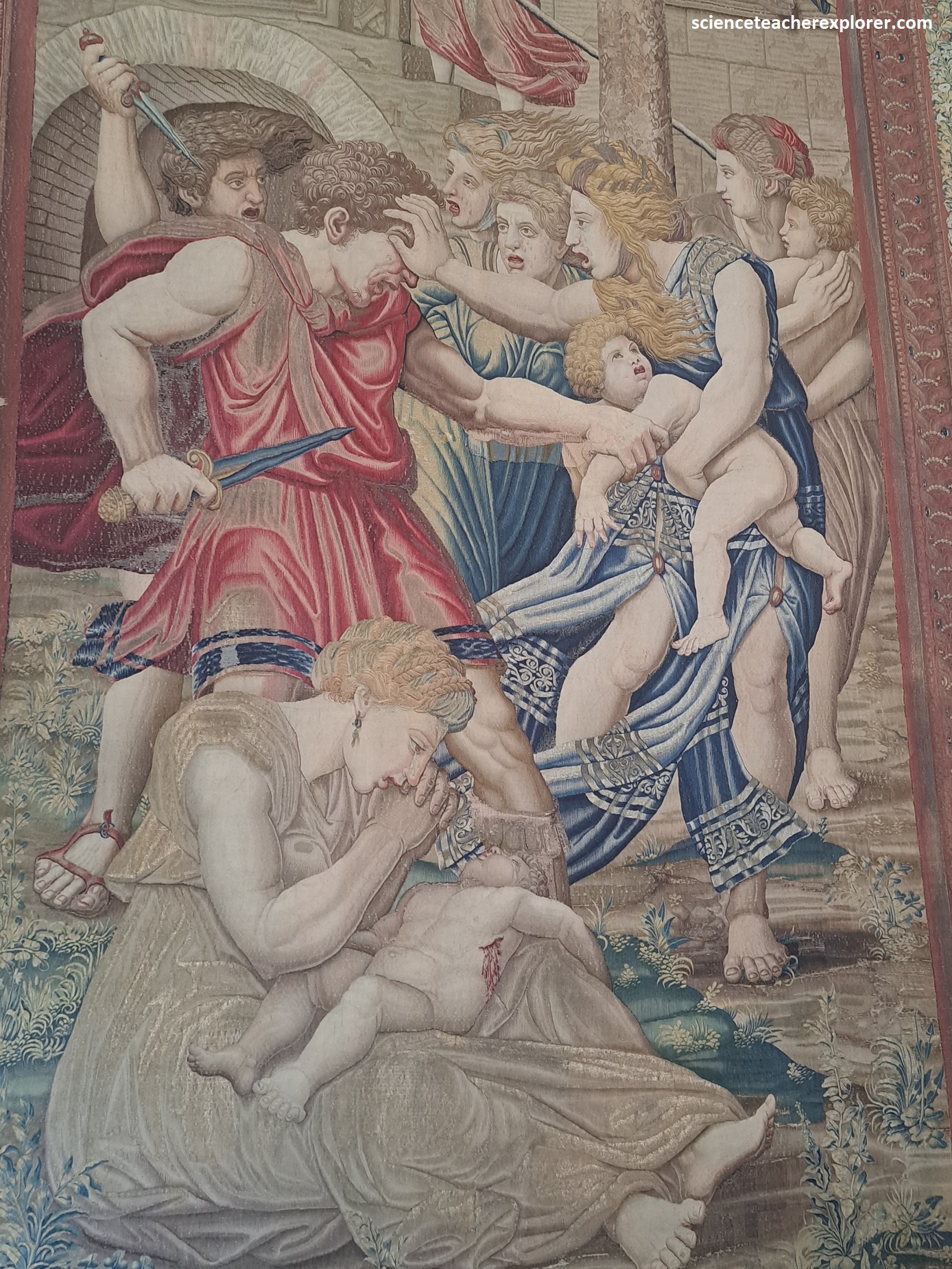 Pictured above, the next three tapestries depicted the massacre of the innocents and on the 3rd we could see the Pantheon on the top left. Herod ordered the execution of all young male children in the vicinity of Bethlehem, to avoid the dethroning by a newborn ‘King of Jews’, whose birth had been announced to him by the Magi.