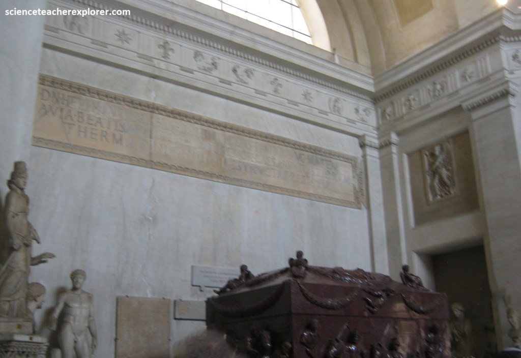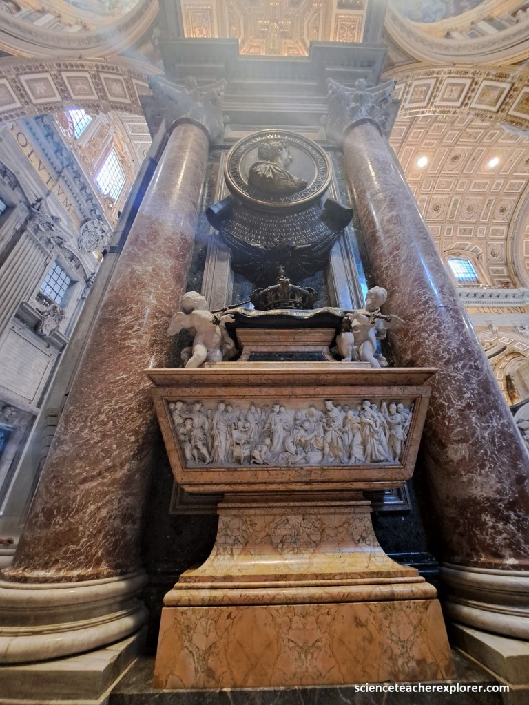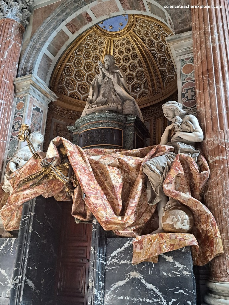 Close to the entrance of the nave, we could see the monument in honor of Christina of Sweden. She was a protestant queen who became Catholic. However, Sweden was a protestant nation, so she had to give up her throne. She then moved to Rome when she was 29 yrs old in 1655 and was welcomed as a hero.
