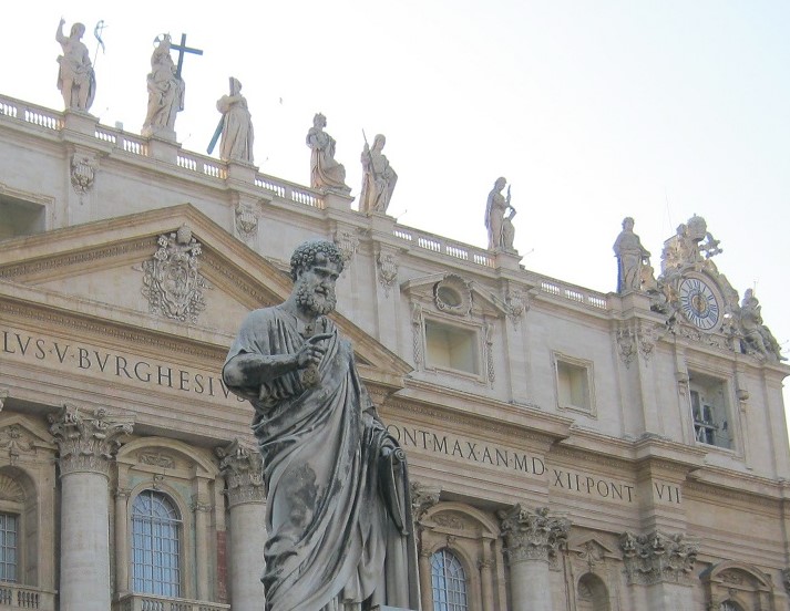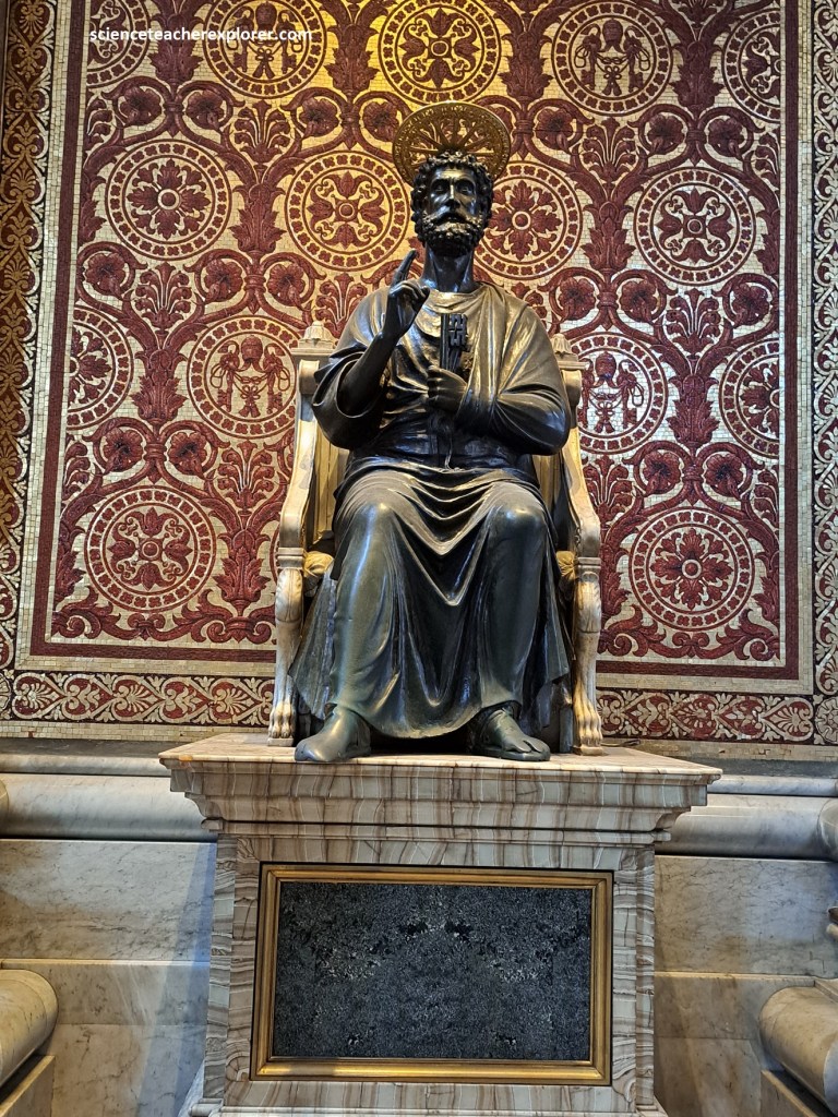 The Catholic Church considers Saint Peter to be the first Pope. Pictured above, this statue of St. Peter was made by Arnolfo di Cambio around 1500. Every year, on the feast day of Saint Peter and Paul, the statue is dressed up in Papal robes.