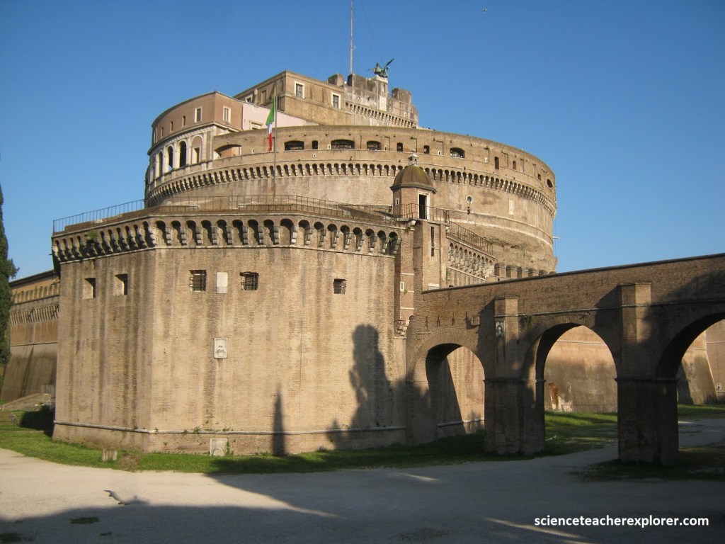 As Rome fell, the mausoleum became a fortress and prison. When the archangel Michael appeared miraculously above the structure in 590AD, the “castle” was renamed for this “holy angel”. Through the centuries it was expanded upward and connected to the Vatican via an elevated corridor, making it a handy place of last refuge for threatened Popes, (pictured above). It also happens to contain the ‘Sala del Tesoro’ (Treasury of the Vatican).