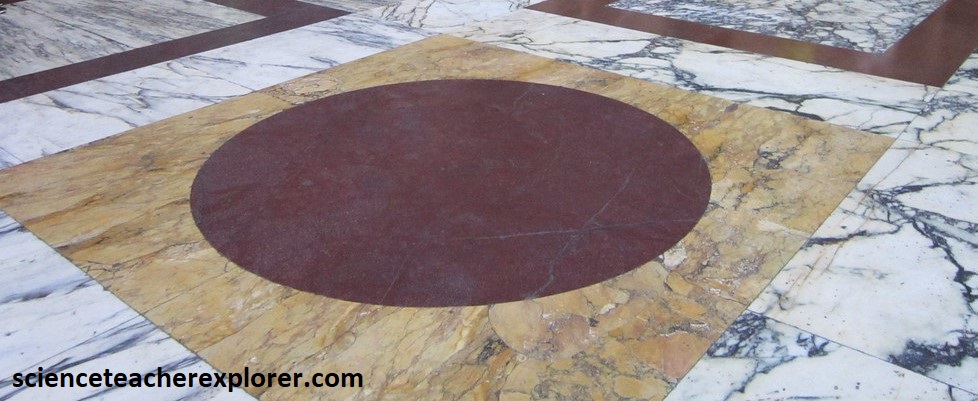 Becky and I noticed a red circle on the floor that was a bit of center with the nave, (pictured above). The circle was made of maroon colored porphyry stone, that we saw in the Vatican Museums.