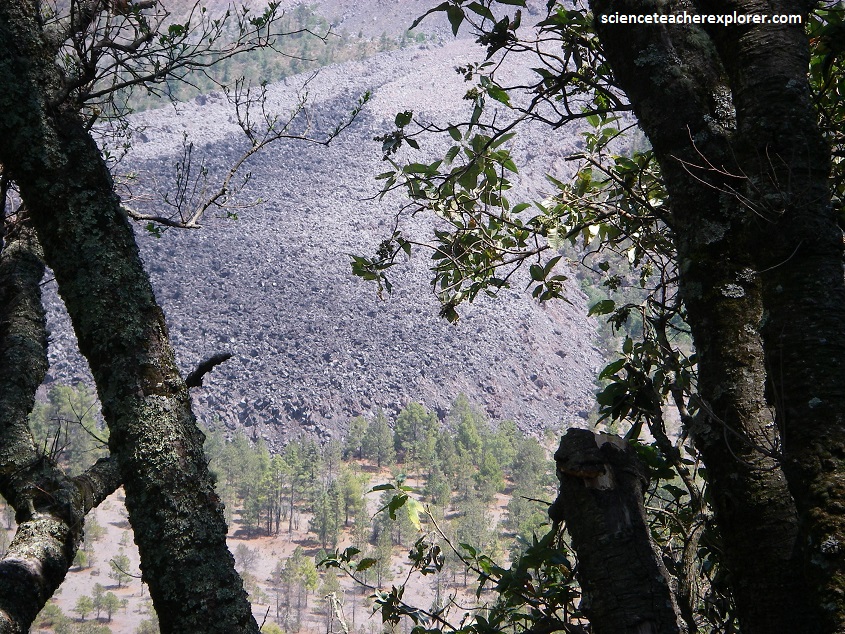 In the late Pleistocene era, a huge landslide occurred at the mountain, with approximately 25 km³ of debris travelling some 120 km, reaching the Pacific Ocean. An area of some 2,200 km² was covered in landslide deposits. Massive events, like this, seem to recur at Colima’s volcano every few thousand years.