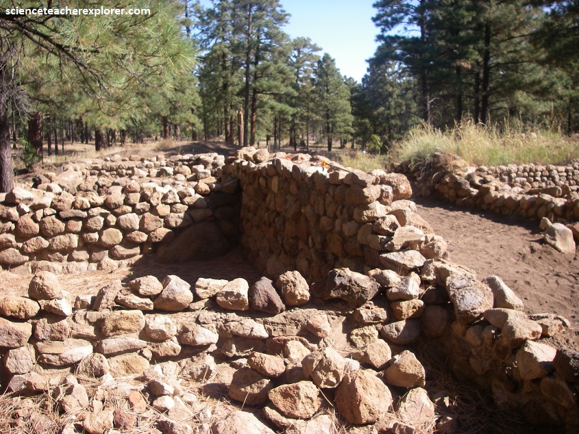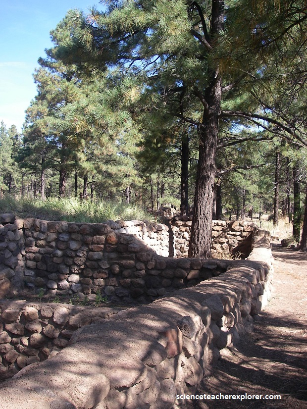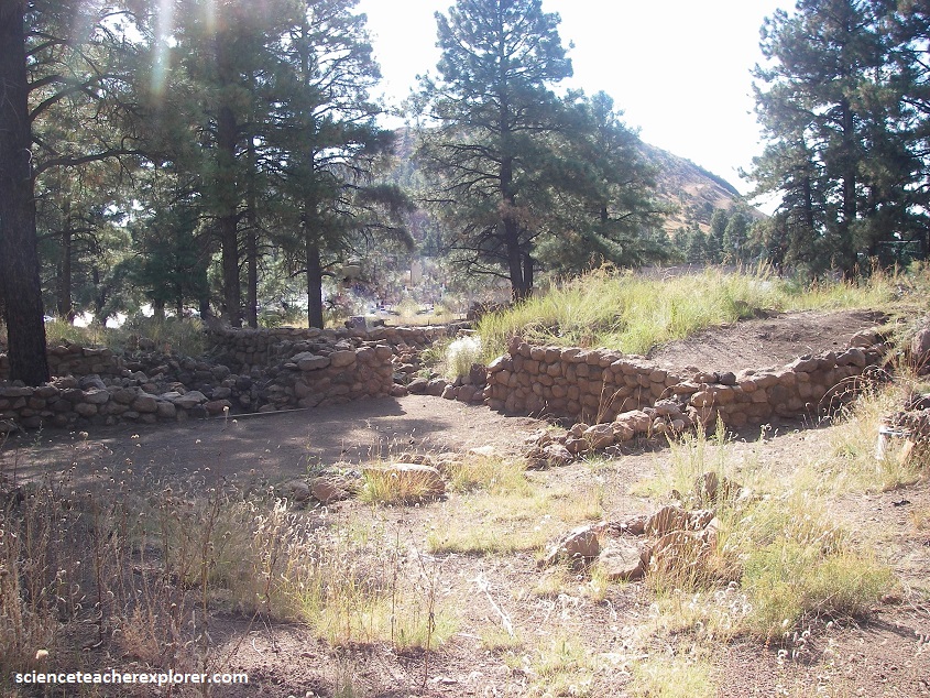 Pictured above, the builders of Elgen used rocks eroding from the base of nearby Mount Elden for construction material. As a community, they were well situated; building stone and wood were close at hand as was a spring, and not far away were open areas with arable soil.