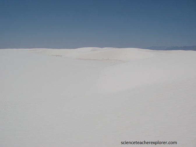 While driving my way to Texas, I drove through south-central New Mexico. There, I was able to explore the White Sands National Monument. White Sands National Monument is located in south-central New Mexico, within the Tularosa Basin, at the northern end of the Chihuahuan Desert. This is North America’s largest desert, the majority of which is located to our south in Mexico. This desert region amounts to about 455,000 square kilometers, stretching some 1900 km south from Alamogordo, New Mexico, to the Mexican state of San Luis Potosi.