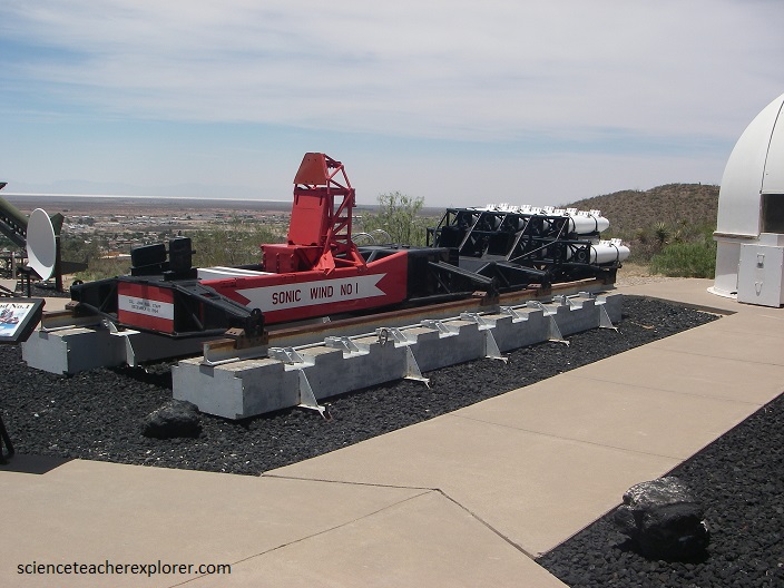 Pictured above, the Sonic Wind No.1. On December 10, 1954, Dr. John Paul Stapp rode this rocket sled, called the Sonic Wind No.1, to a speed of 632 miles per hour. The objective of this test, which took place at Holloman Air Force Base, was to measure human response to sudden deceleration.