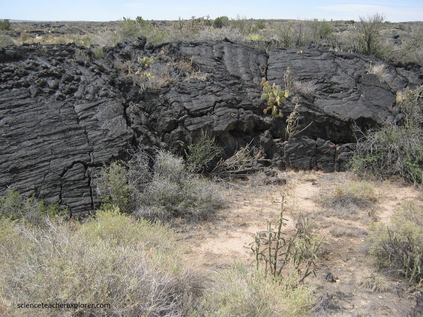The valley also has eight lava tube, where molten rock once flowed through subsurface channels. As you can see, plant and animal life abounds in the Malpais. Windblown topsoil vegetates cholla, sotol and
