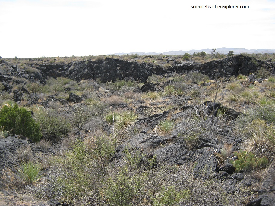 The lava making up the flow came from Little Black Peak, about 16 km north-northwest of Carrizozo. It reached about 64 km south-southwest along the bottom of Tularosa Basin in two active flows. At their southern end, the lava flows are about 19 km north of the dune fields of White Sands National Park.