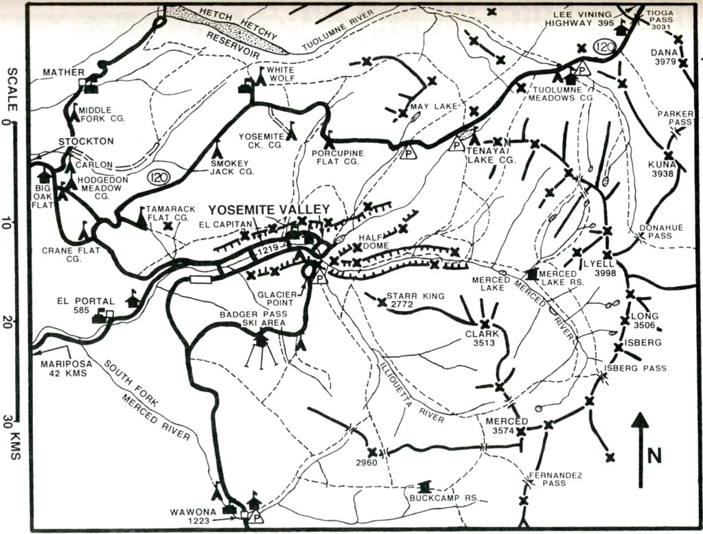 Built as the “Great Sierra Wagon Road” to supply mines near Tioga Pass, this highway was purchased and repaired, as a gift to the people, by Stephen Mather in 1915. It gradually ascends the forested west-tilting slope of the Sierra to Tuolumne Meadows, and then climbs to Tioga Pass.