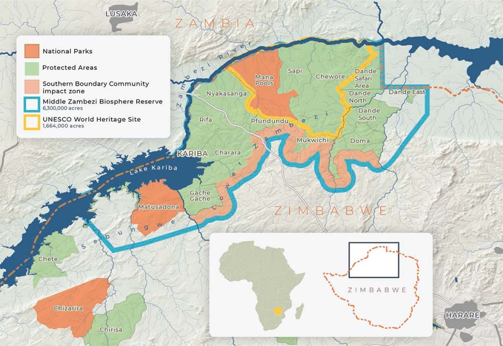 Zambia’s newest national park covered 4092 km2 along the northwestern bank of the Zambezi River opposite the Mana Pools national Park in Zimbabwe. This was Zambia’s premier parks, with a beautiful flood plain alongside the river, dotted with acacias and other large trees, and flanked by a steep escarpment on the northern side, covered with thick Miombo woodland.