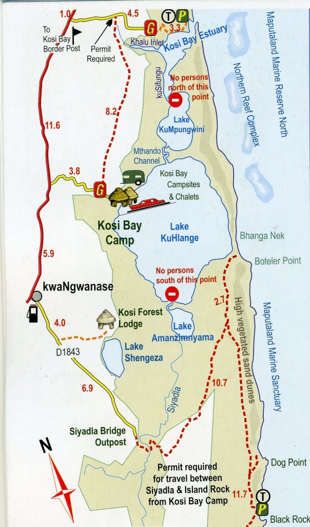 Our first destination, the Kosi Bay Reserve was about 15 km northeast of Kwangwanase via dirt road.