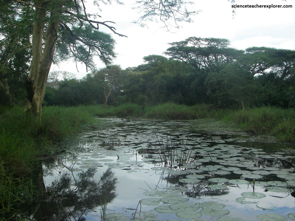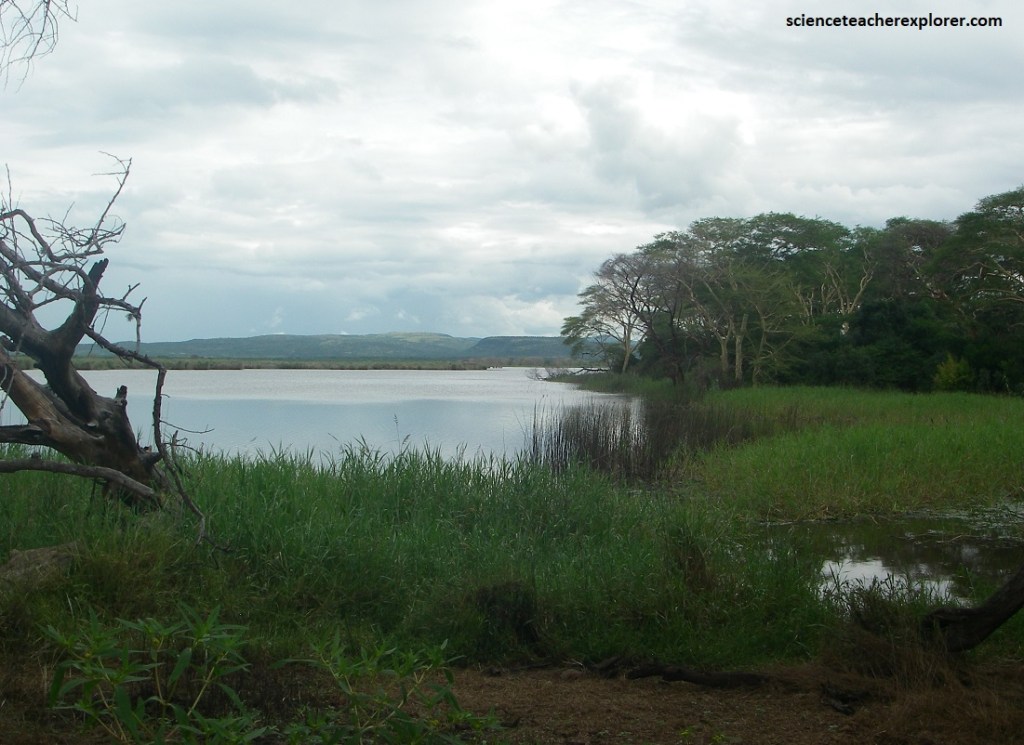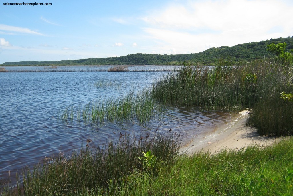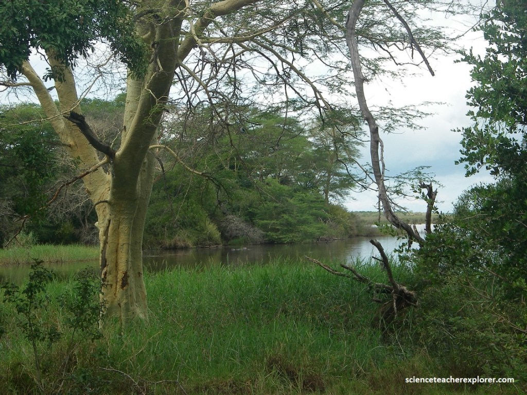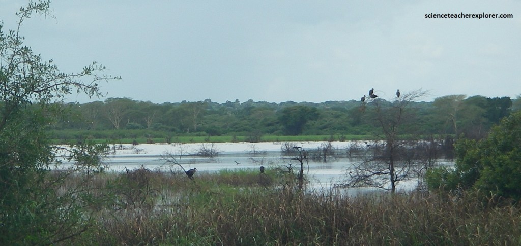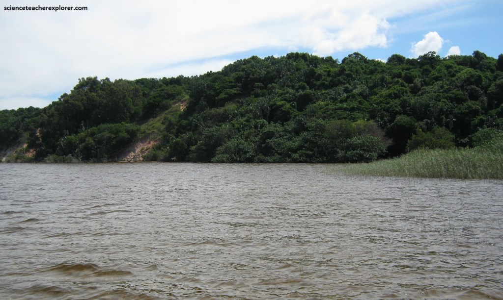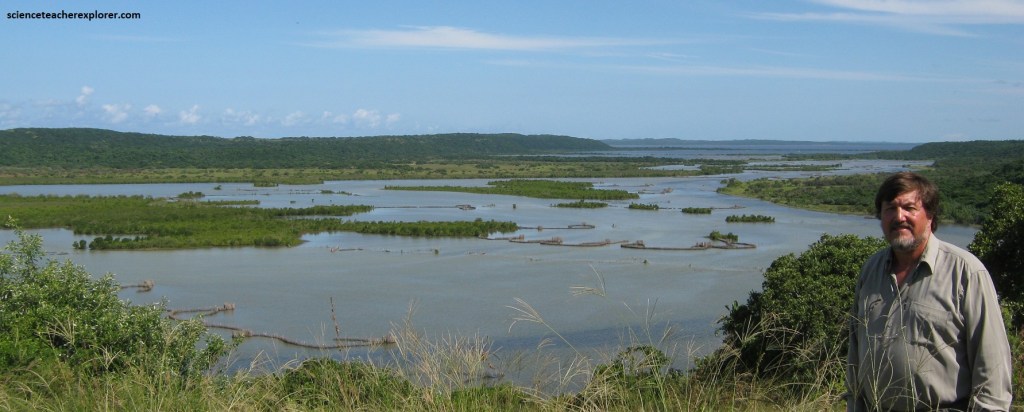 The next morning, my trekking partner, (Mike Stevens) and I traveled south into the “Greater St. Lucia Wetland Park”. The St. Lucia Wetland Park on the eastern coast of KwaZulu-Natal stretches from Kosi Bay in the north to Cape St. Lucia in the south. The park, (the first in South Africa to be declared a World Heritage Site), comprises a huge lagoon-estuary running parallel to the coast. Massive forested sand dunes, (the world’s highest), prevent the Mkuze River from reaching the sea. The river is forced southward, creating the 60 km long Lake St. Lucia. With its location between subtropical and tropical Africa, the park incorporates an astonishing variety of habitats, ranging from the Ubombo Mountains to saline swamps and salt marshes.