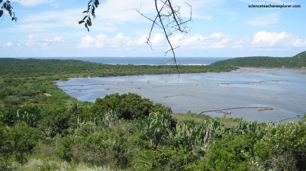 We drove 8 kilometers north from the Kosi Camp where one of the most impressive views in the country overlooks Kosi Bay (in reality an estuary), laced with intricate Tsonga fish traps and unchanged for centuries.