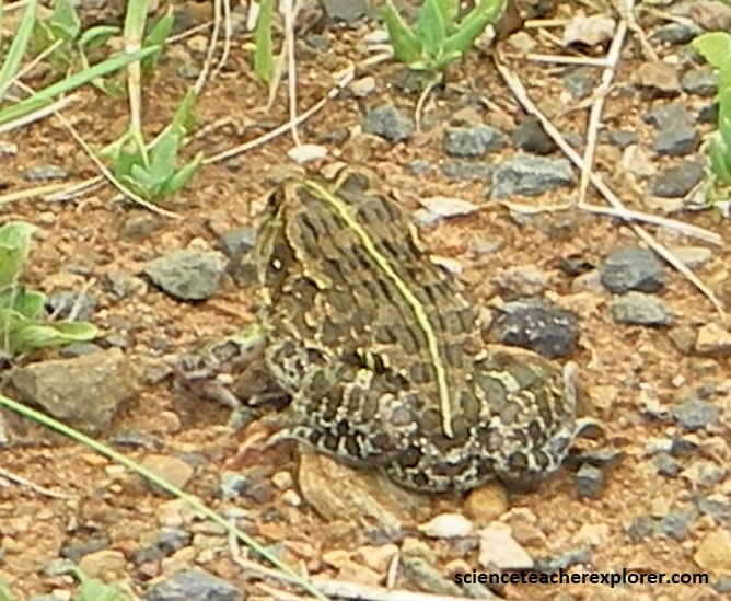 The low lying hollows adjacent to red sand dunes contain attractive groves of scented thorn which grow in clay soils. There is a substantial and rare sand forest found in the heart of the reserve, a habitat noted for its dark-leafed, wide spreading sherbert tree, and the red heart tree. We found a large number of Tremolo Sand Frog Tomopterma cryptotis near the road.